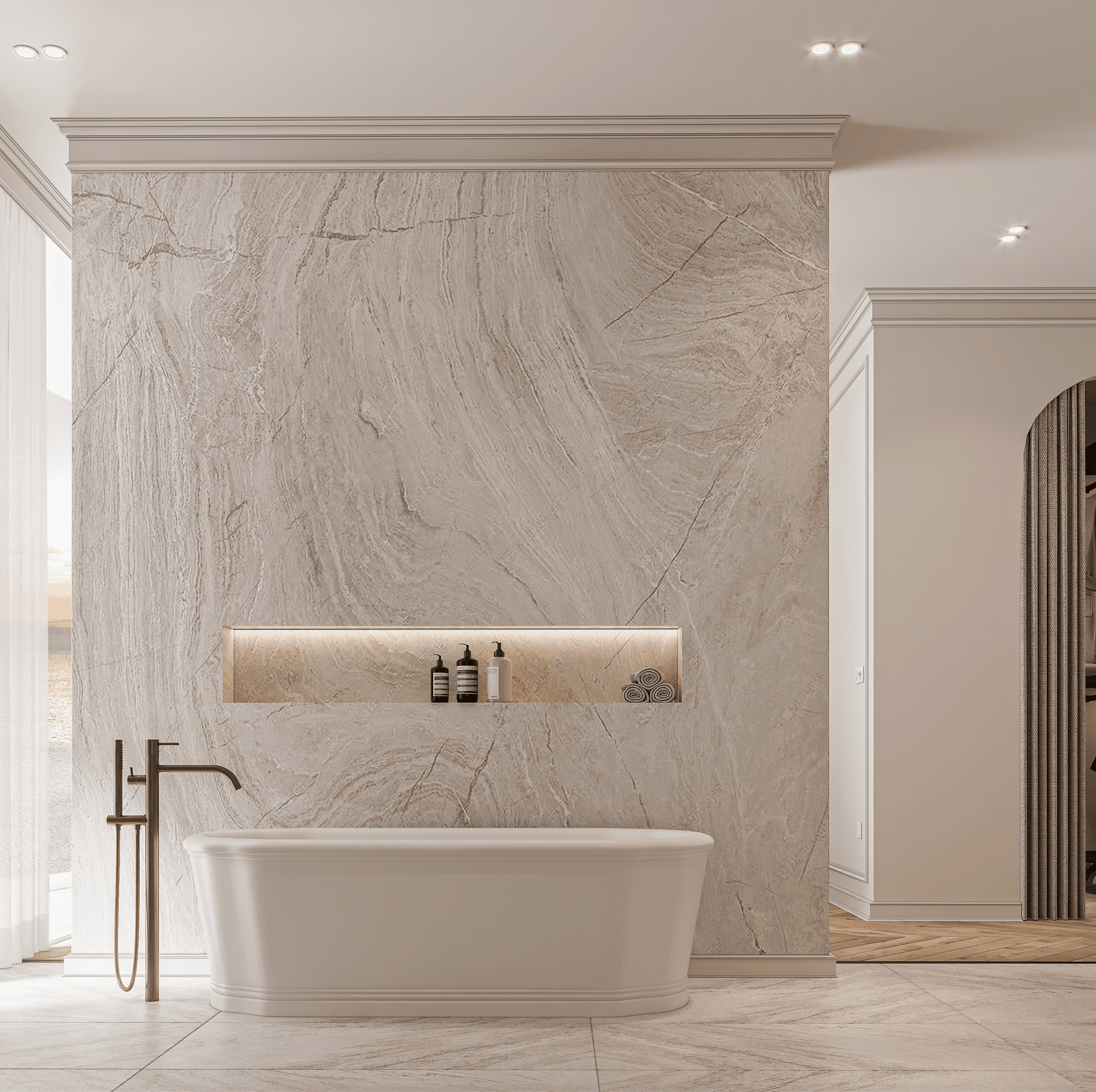 Each detailed decision is carefully chosen to reflect the city's allure, creating a space that feels luxurious and graceful.