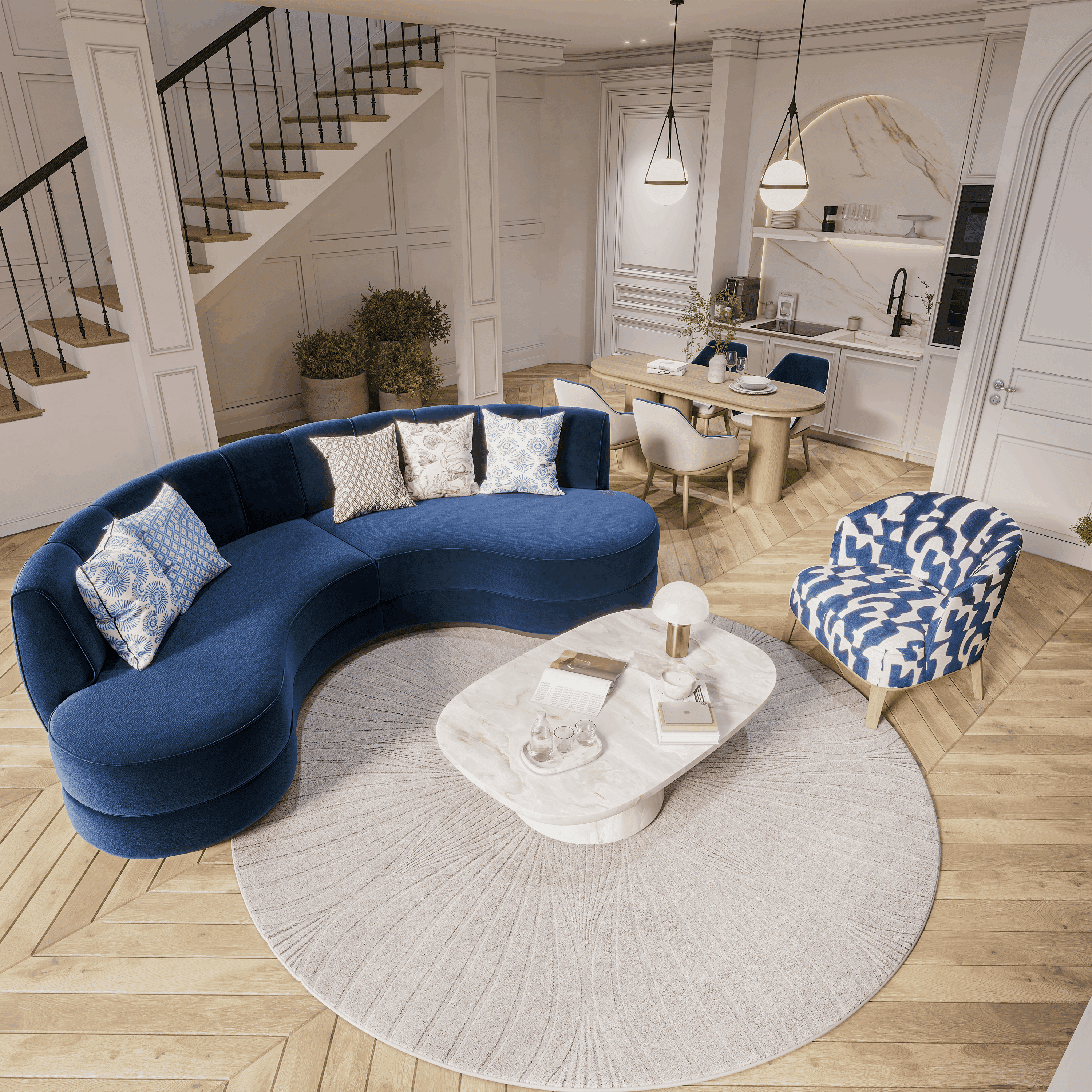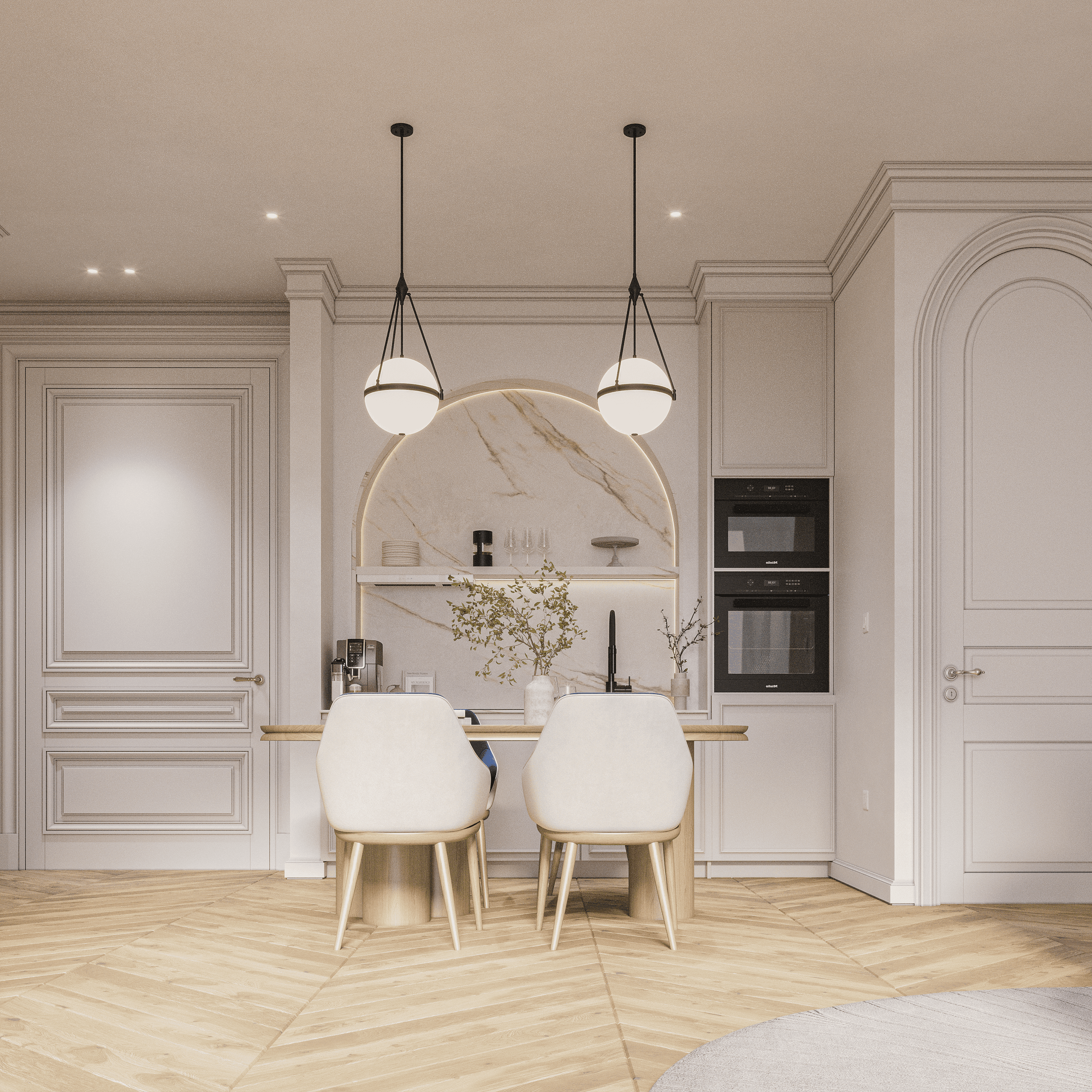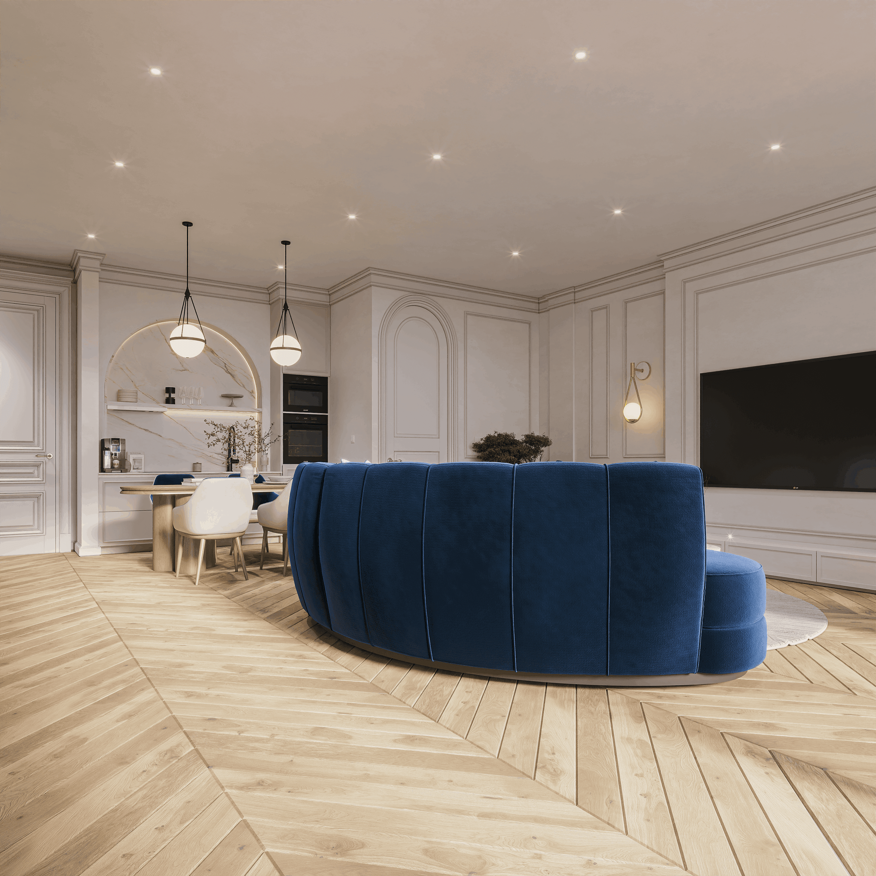 Each detailed decision is carefully chosen to reflect the city's allure, creating a space that feels luxurious and graceful. An inviting atmosphere of contemporary design.