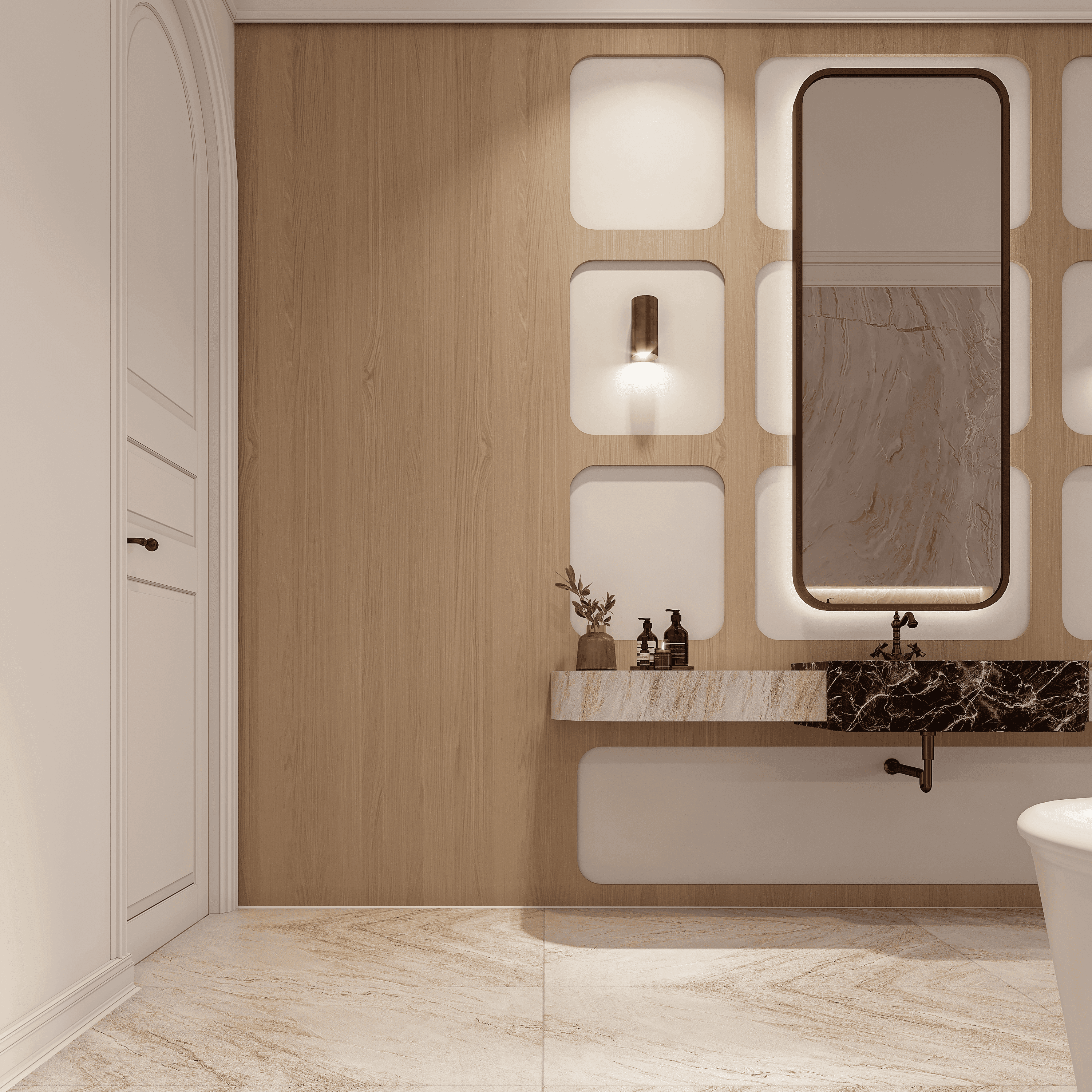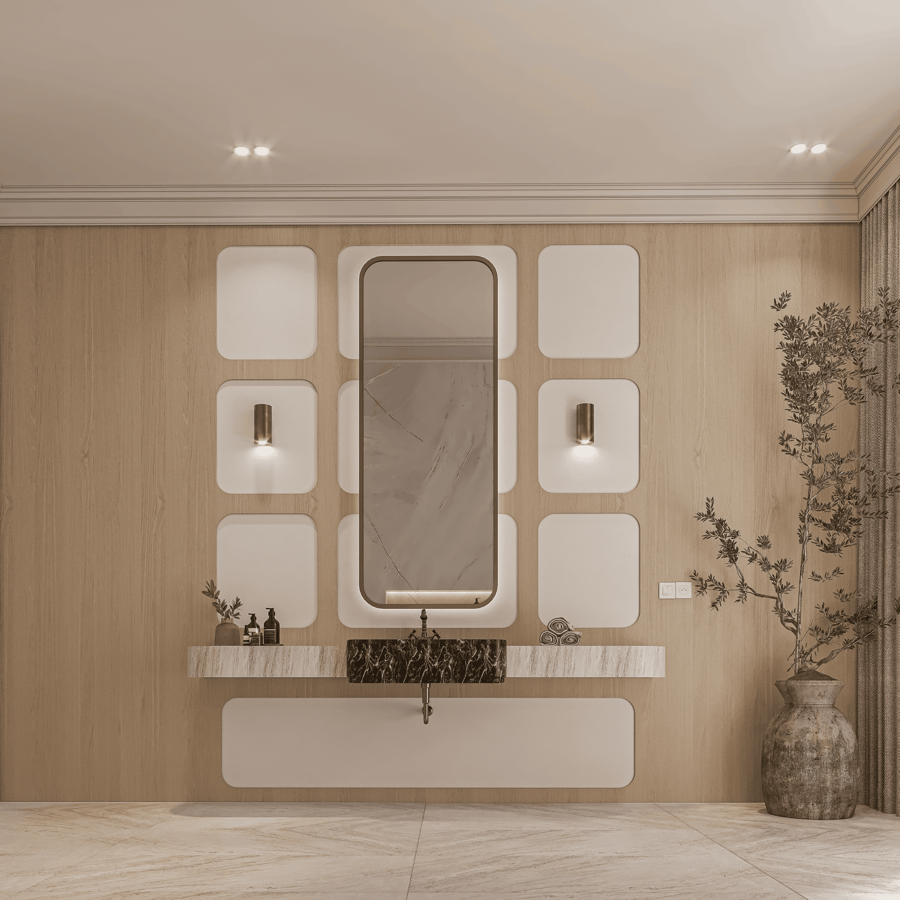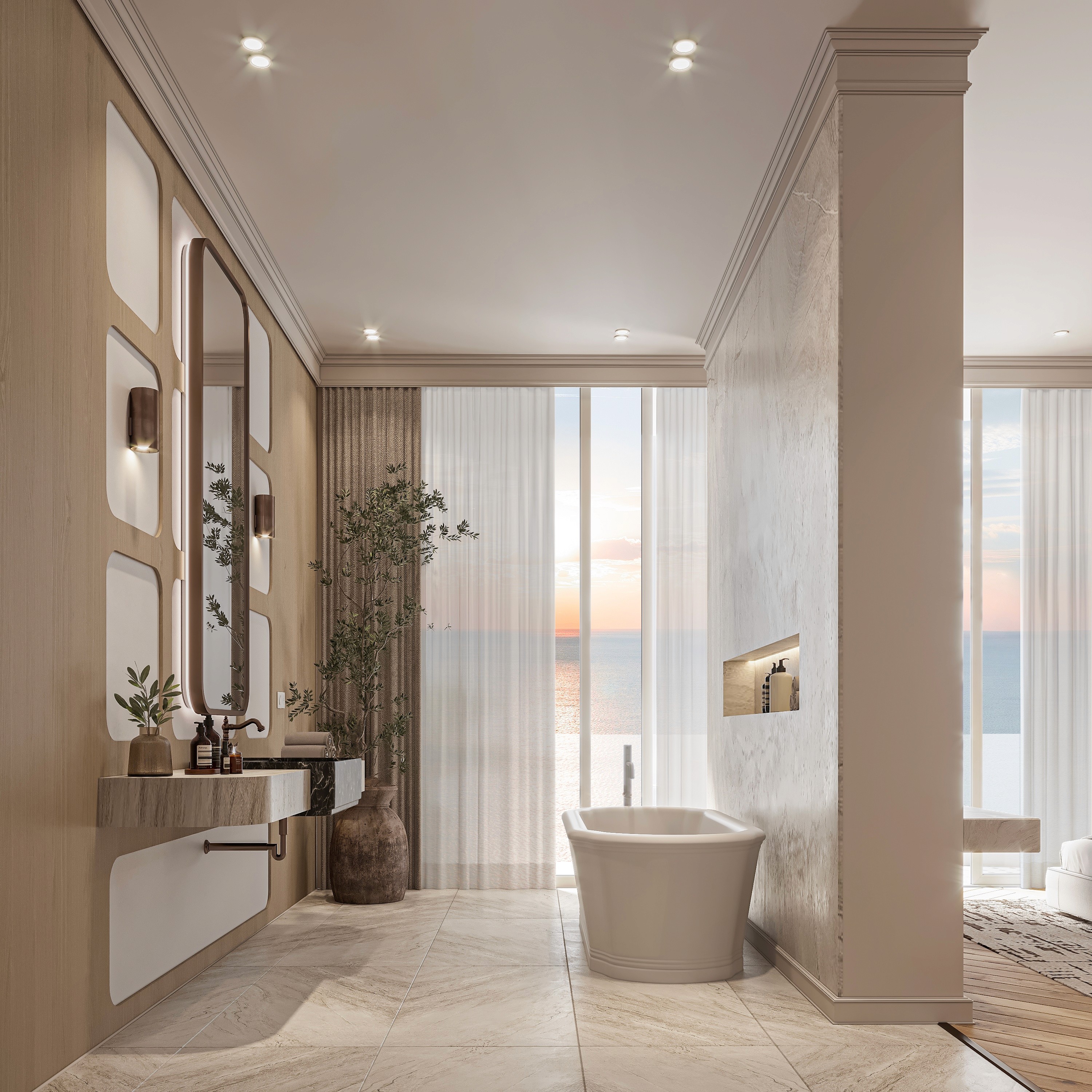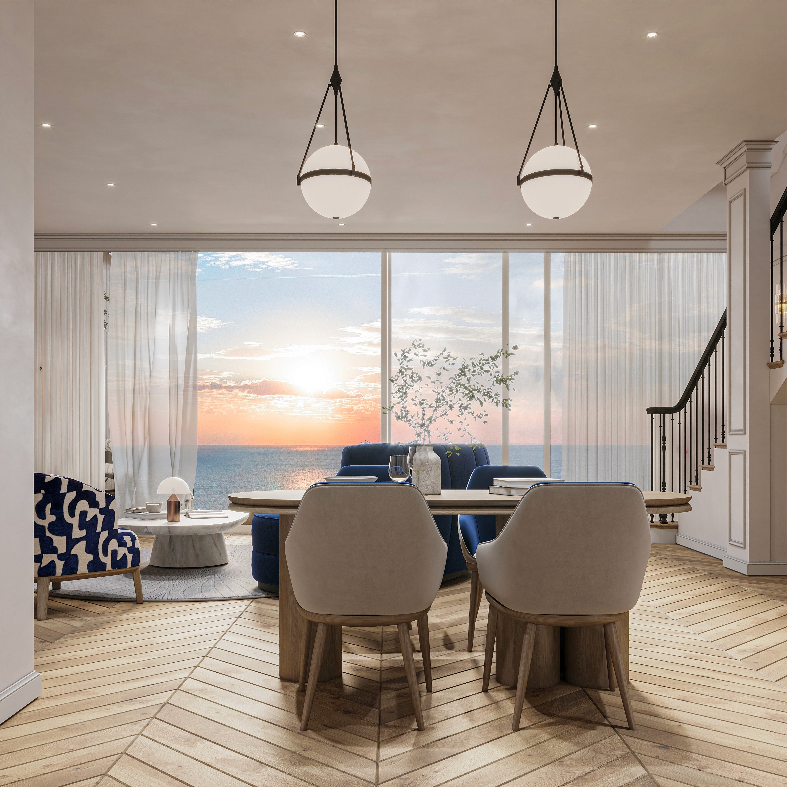Each detailed decision is carefully chosen to reflect the city's allure, creating a space that feels luxurious and graceful. An inviting atmosphere of contemporary design.