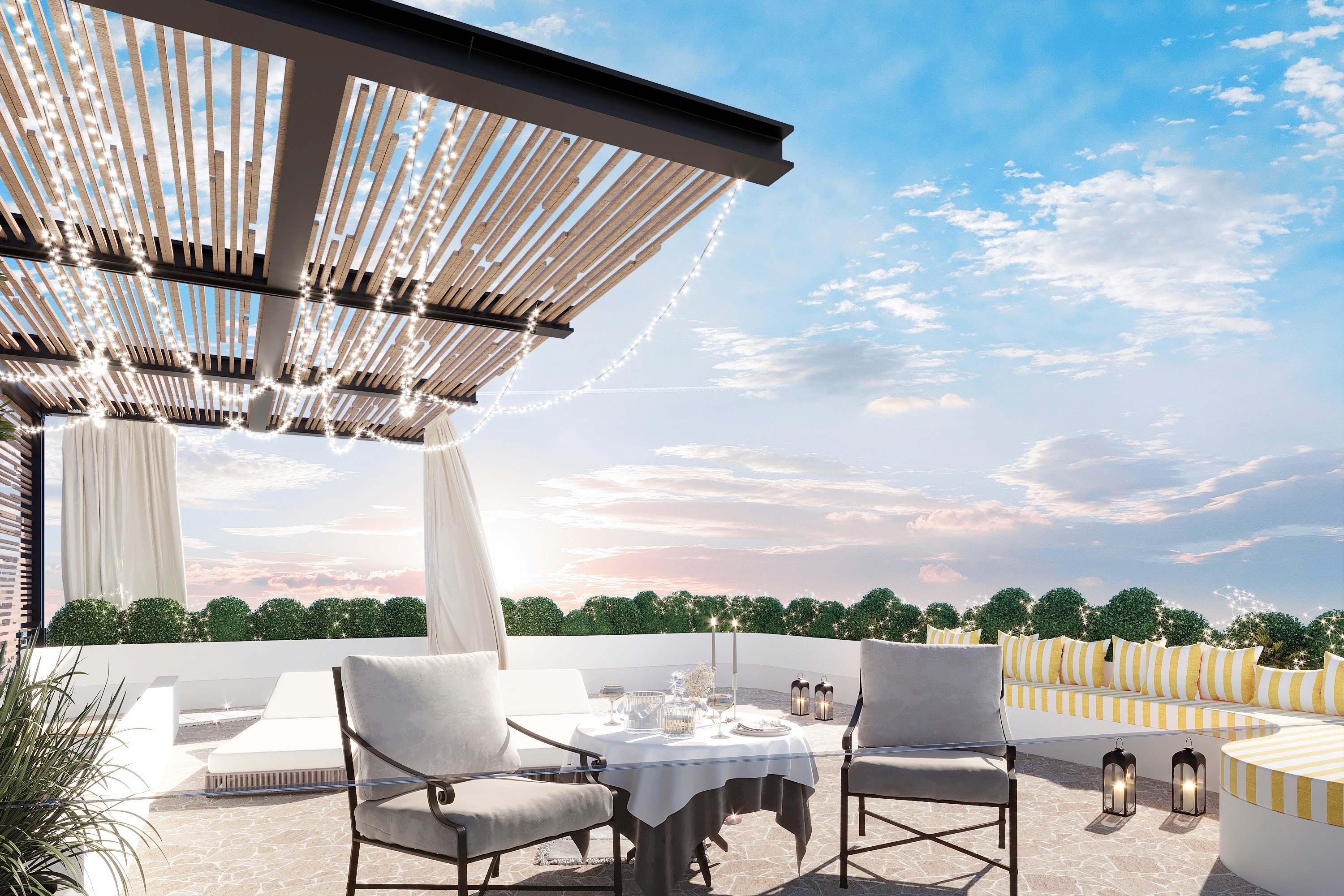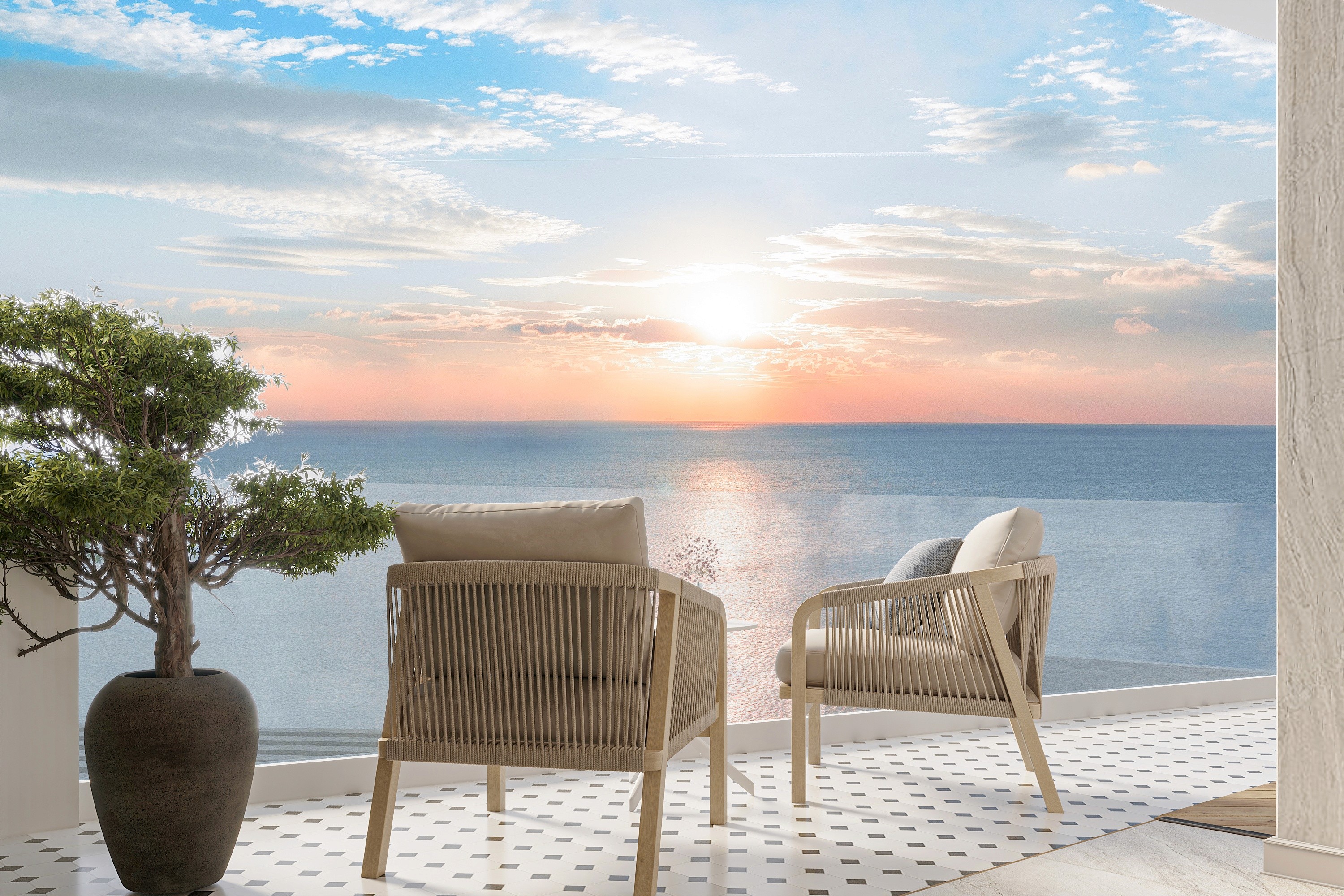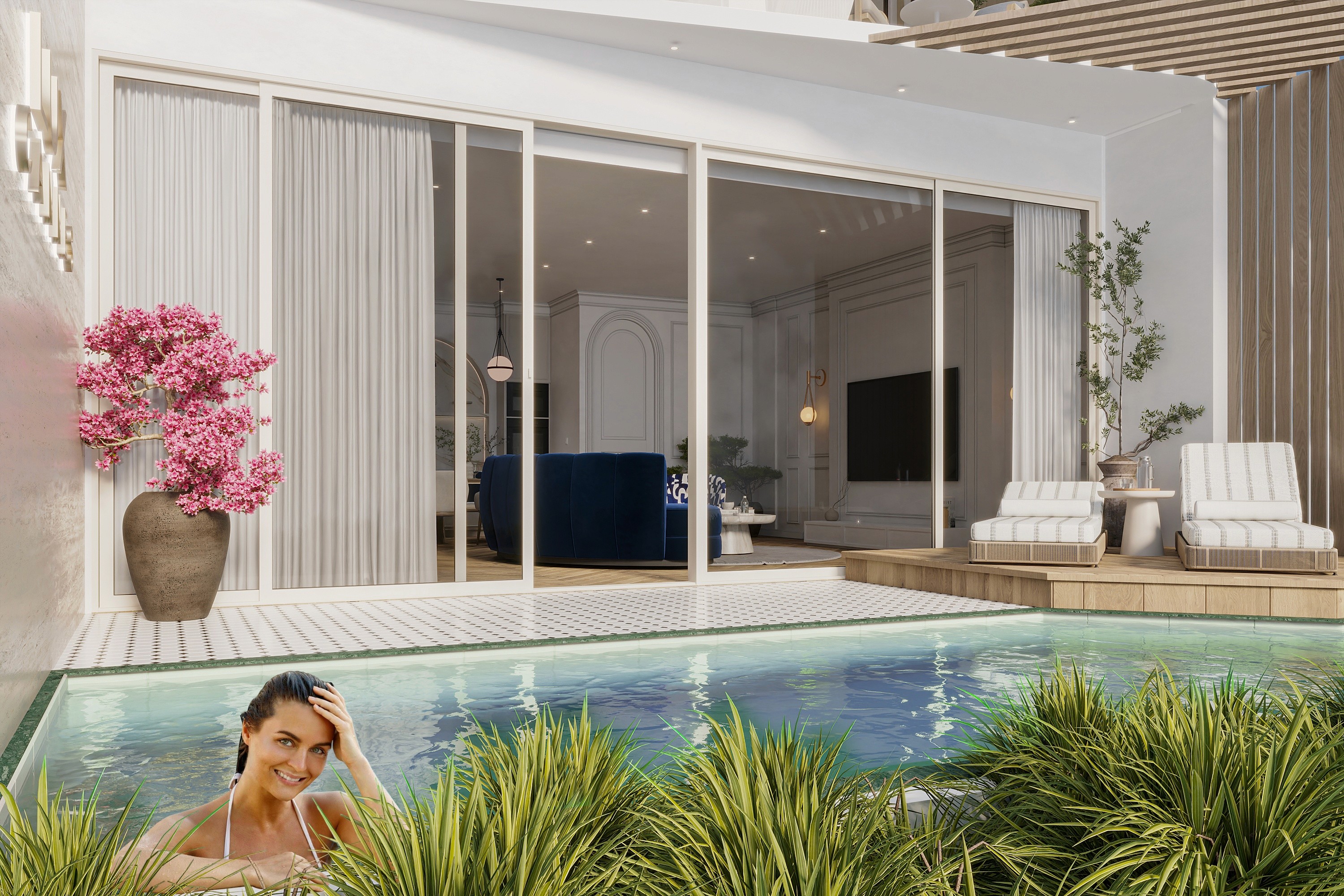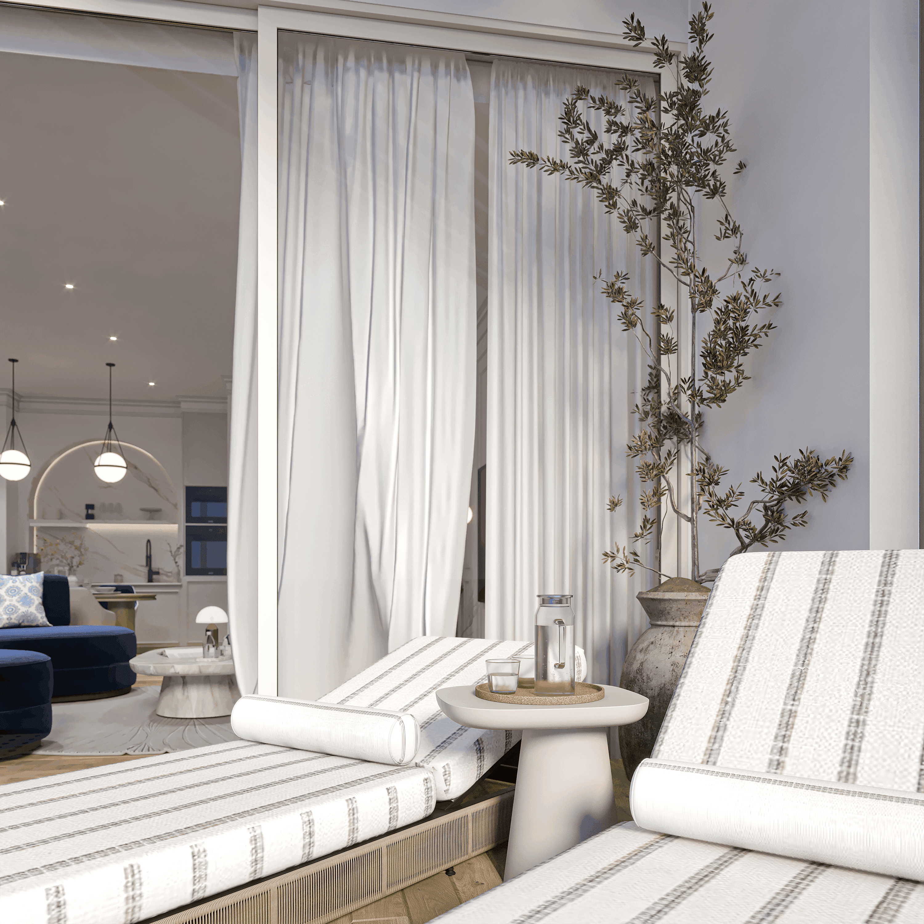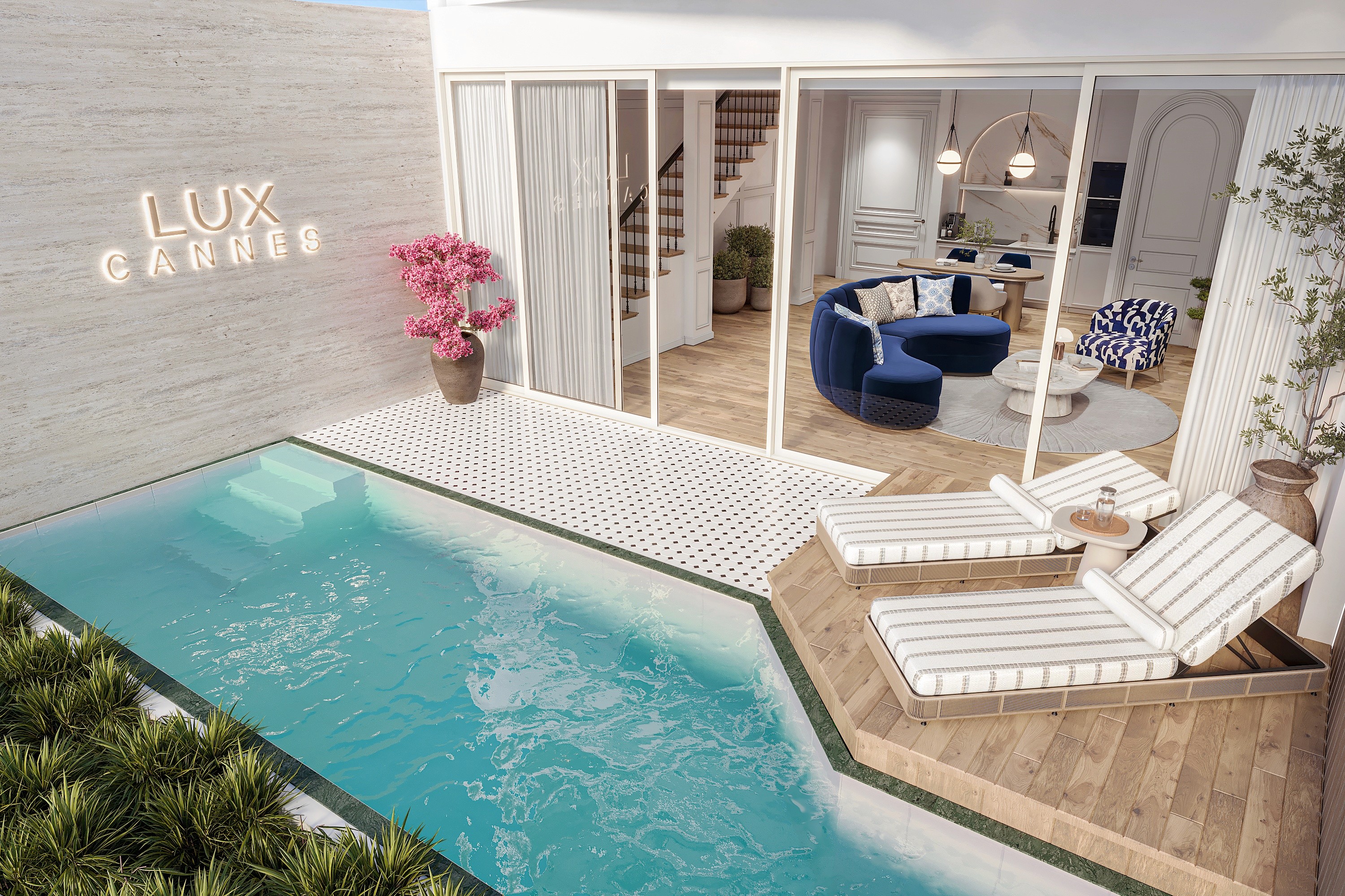LUX Cannes exudes elegance synonymous with the French Riviera blending creamy, milk-toned interiors with a touch of modern sophistication. The furniture, a mix of sapphire blues and iconic striped patterns, captures Cannes' coastal charm while showcasing class.