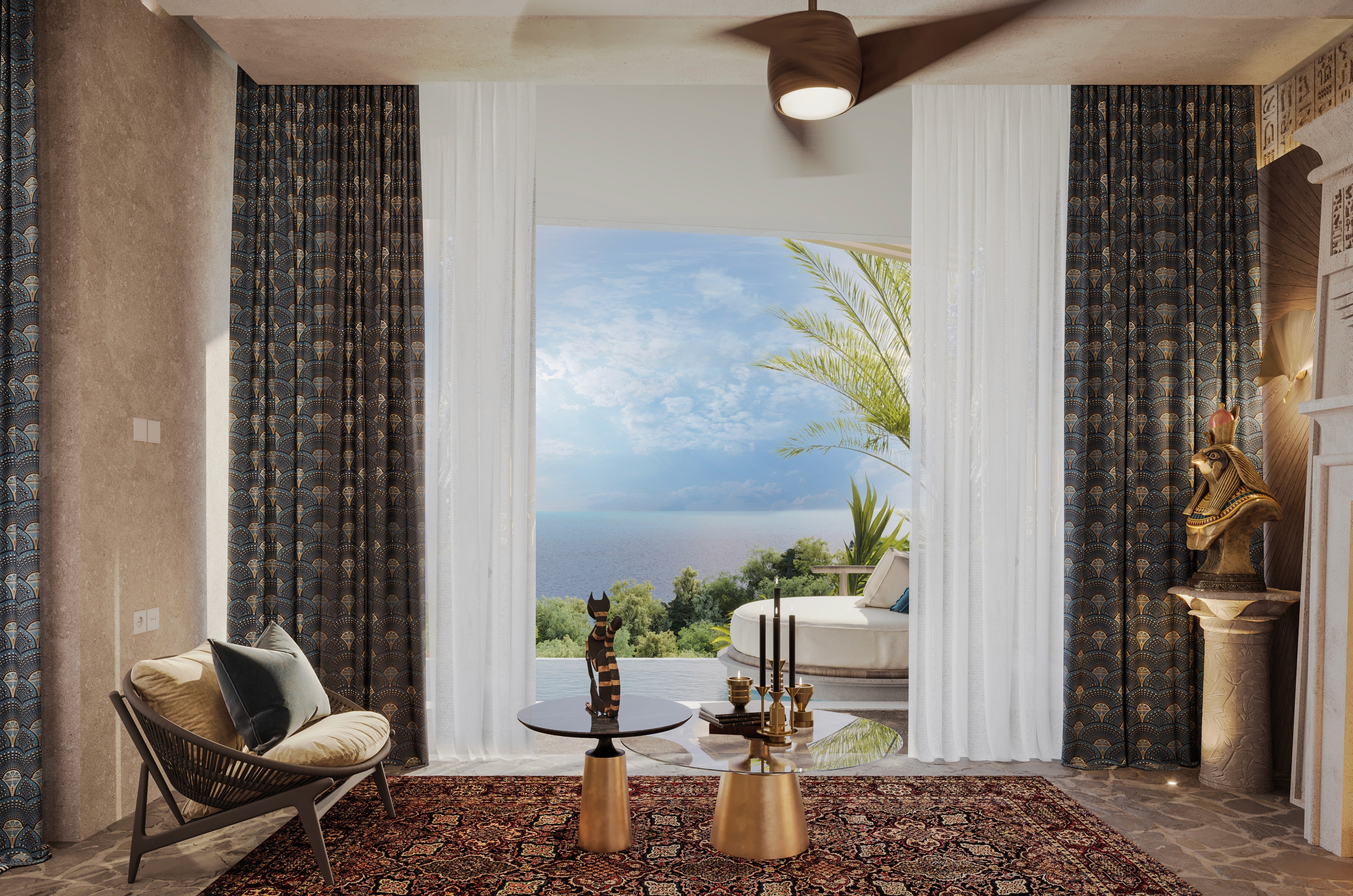Egyptian-inspired luxury villa with stunning ocean views.
