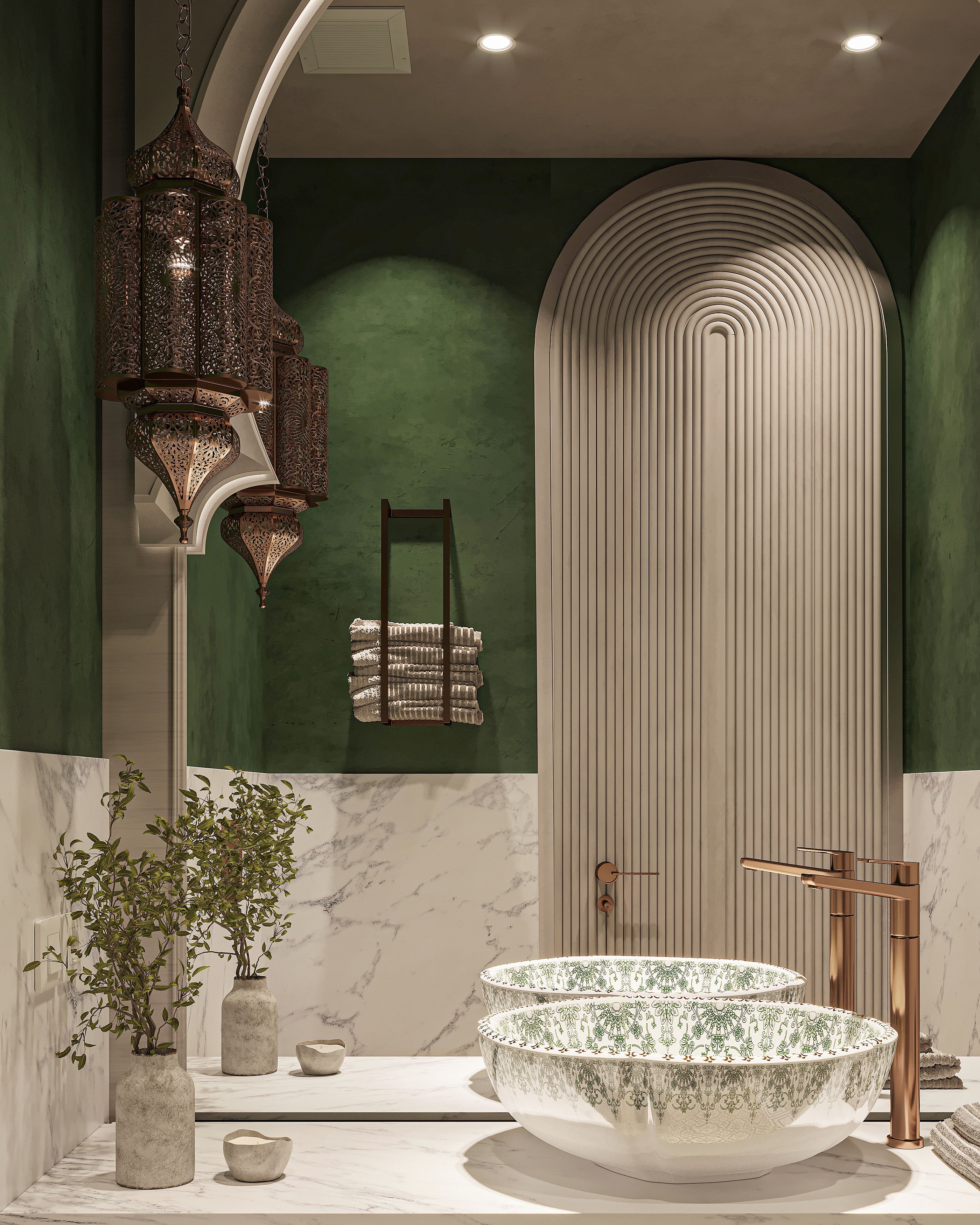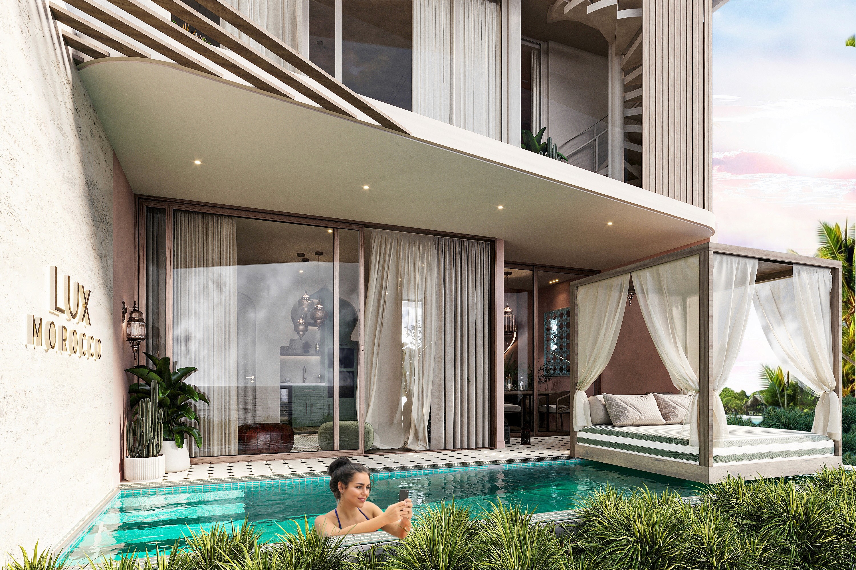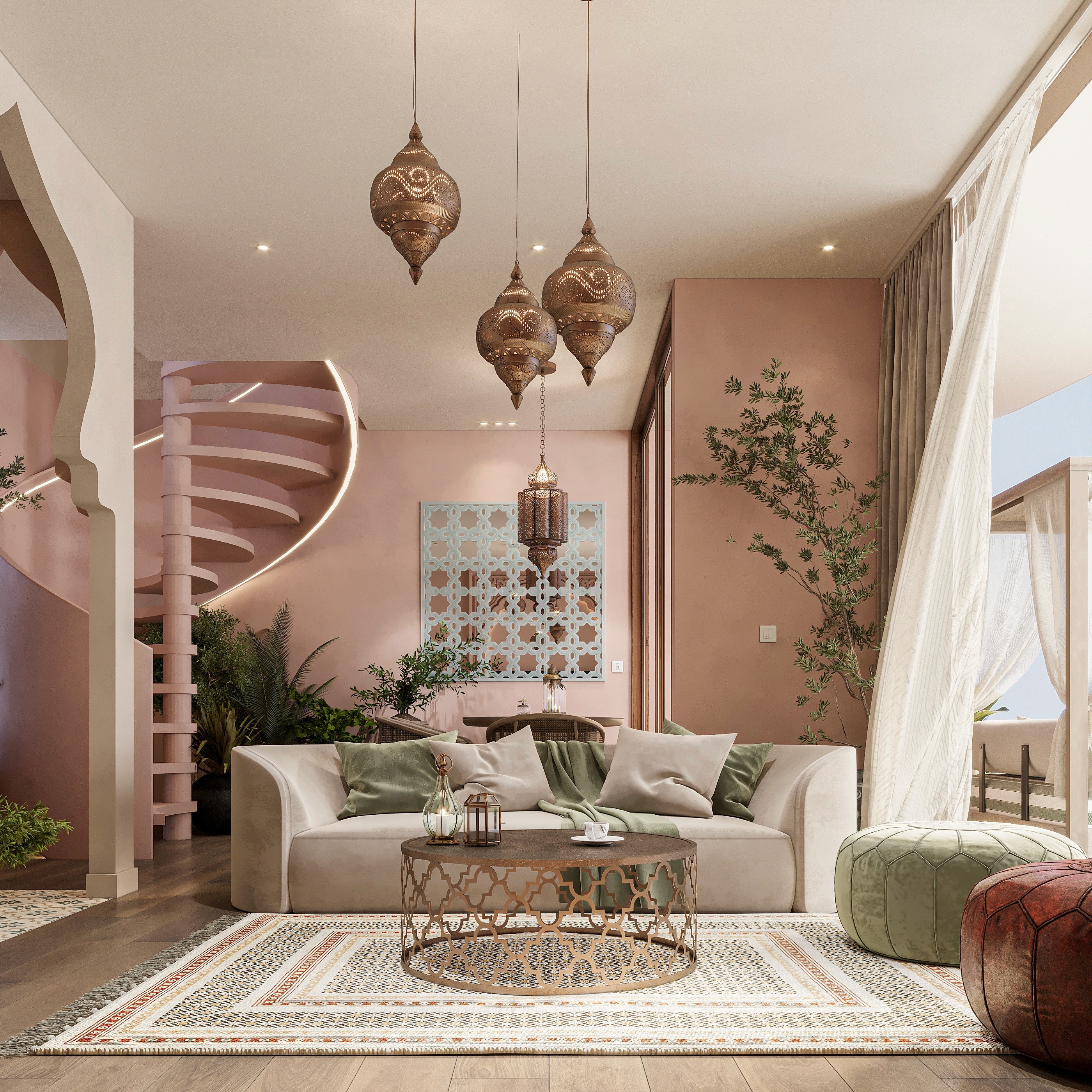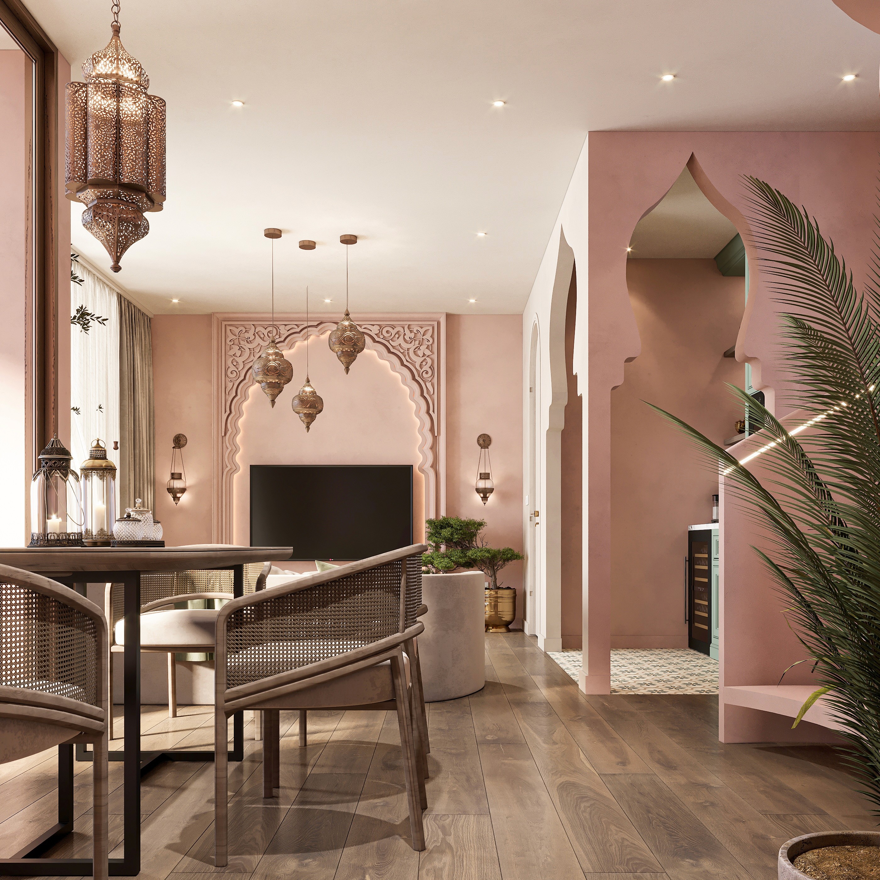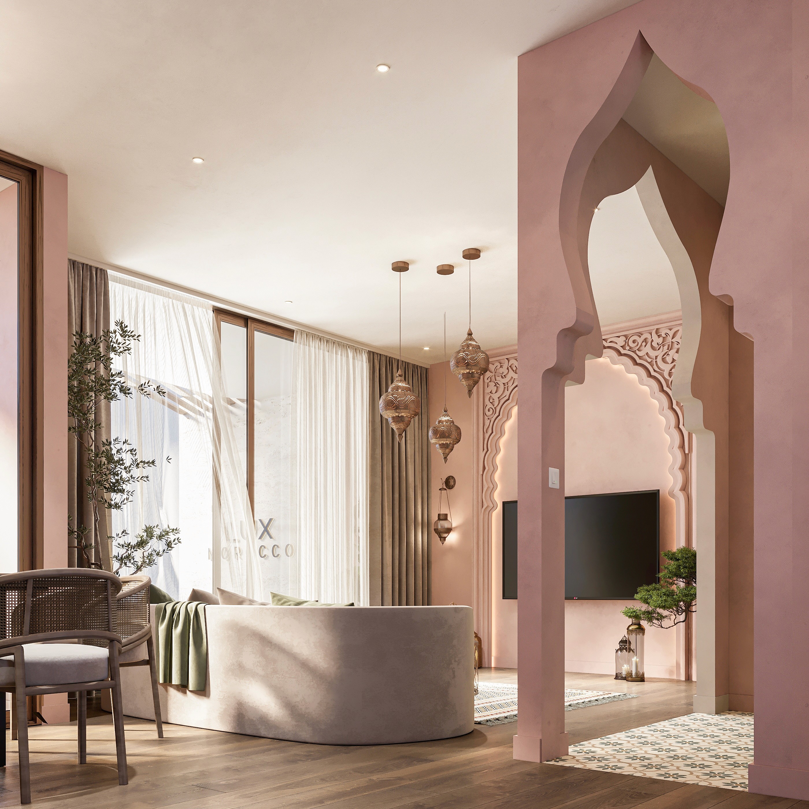 LUX Morocco captures North African charm, weaving dusty pinks and greens into a setting that radiates both warmth and sophistication. The interiors are accented with classic Moroccan rose gold ornaments subtly echoing the region's deep-rooted cultural heritage.