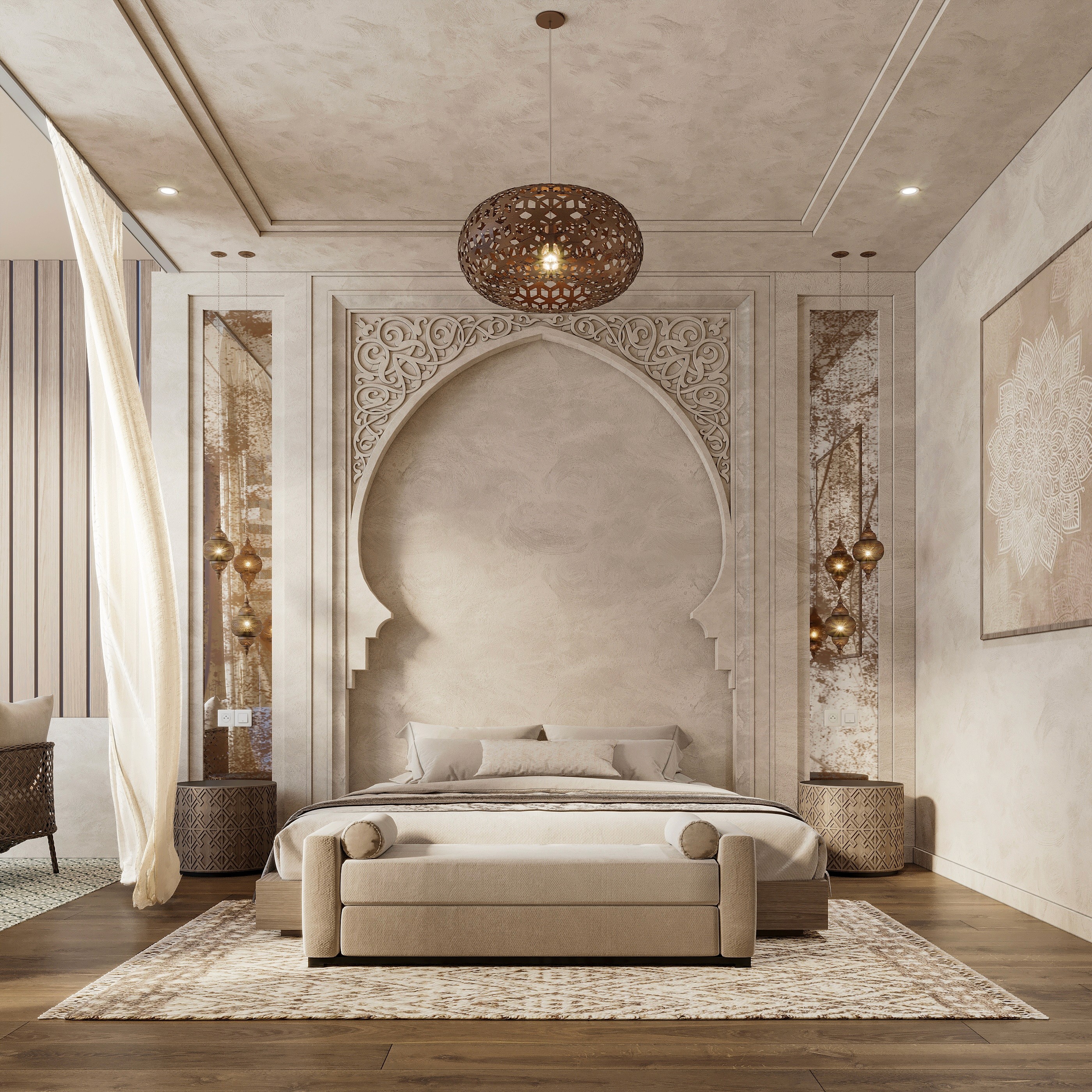 Every element is carefully curated to reflect Morocco’s unique character, blending tradition with modern flair. The result is a space that feels elegant, where the soft hues and ornate details create a serene atmosphere. Here, the beauty of Morocco is brought to life in a charming retreat.