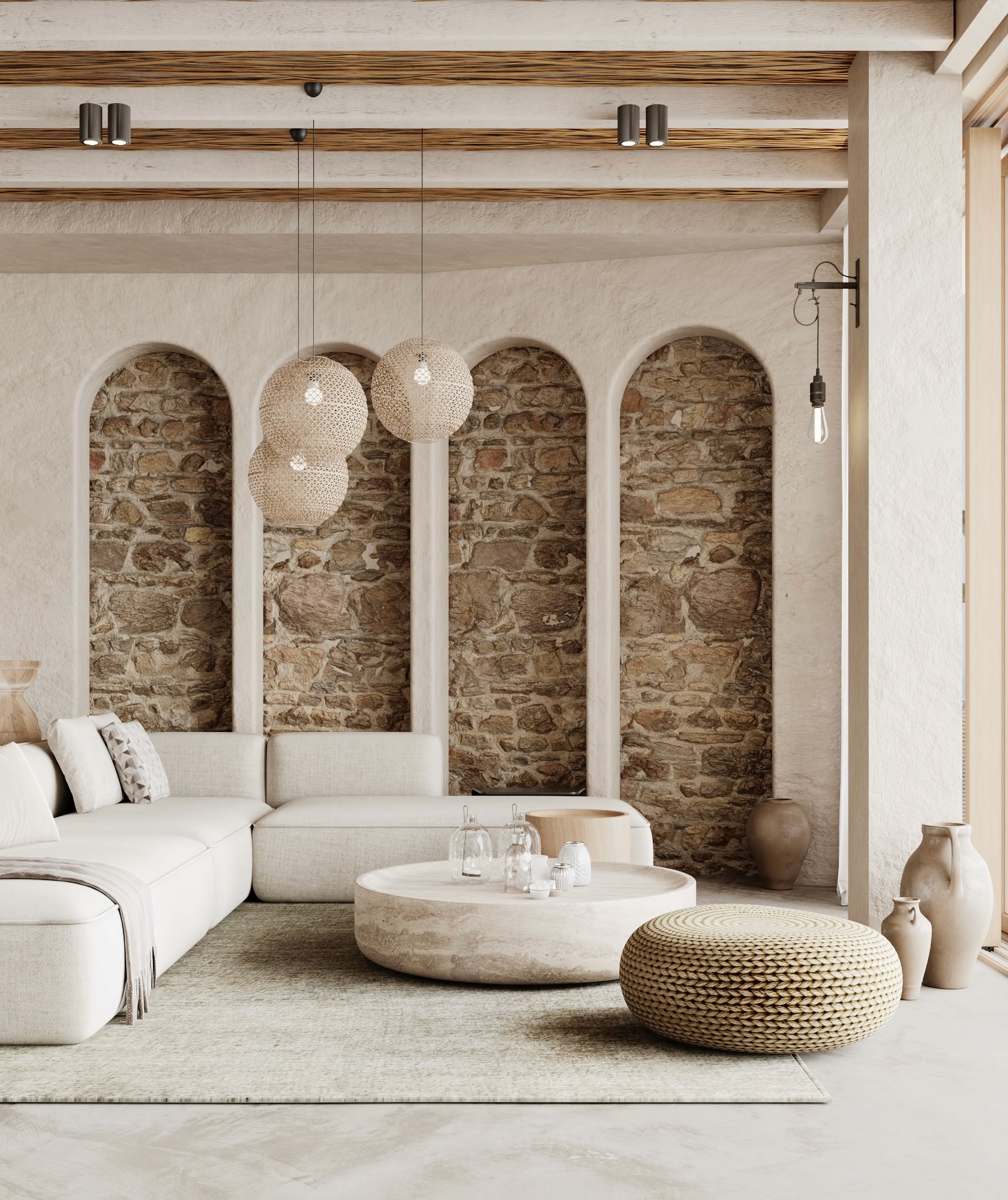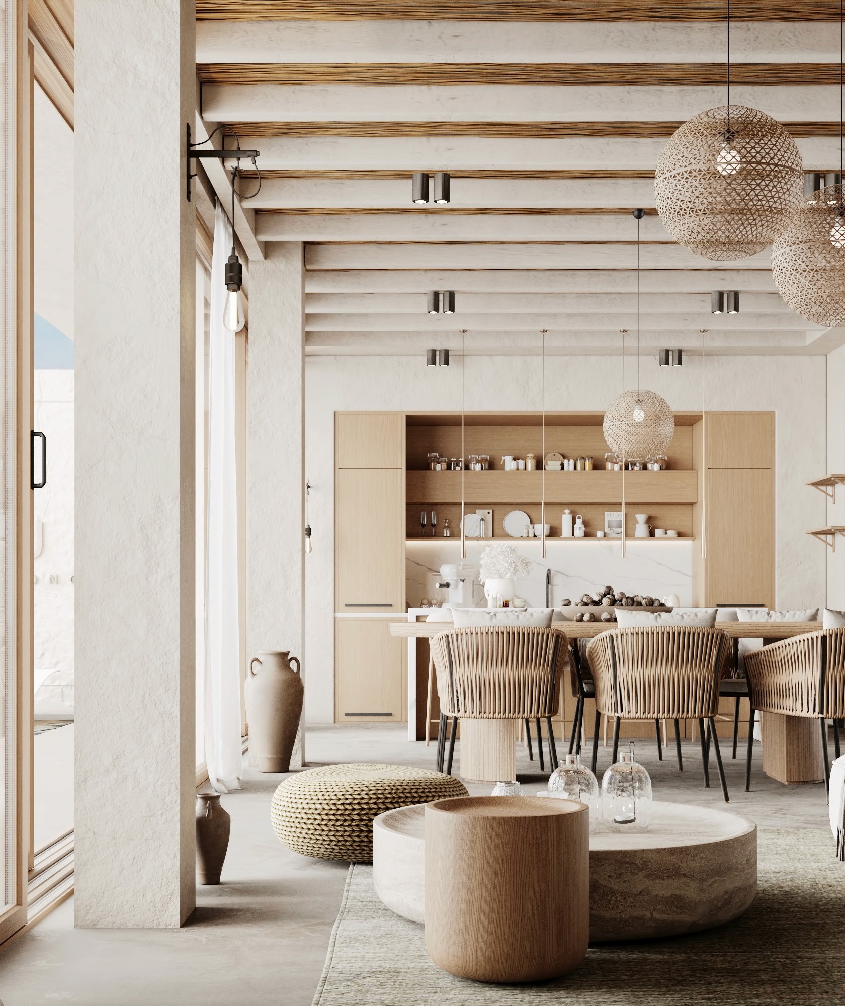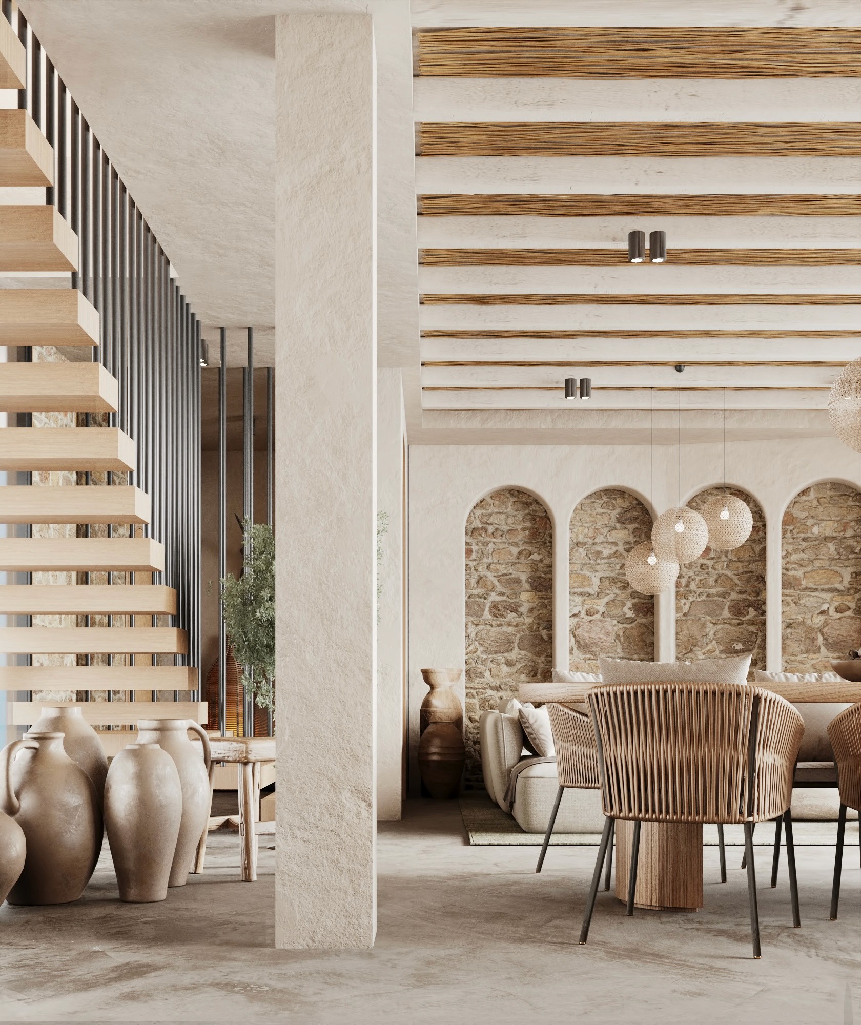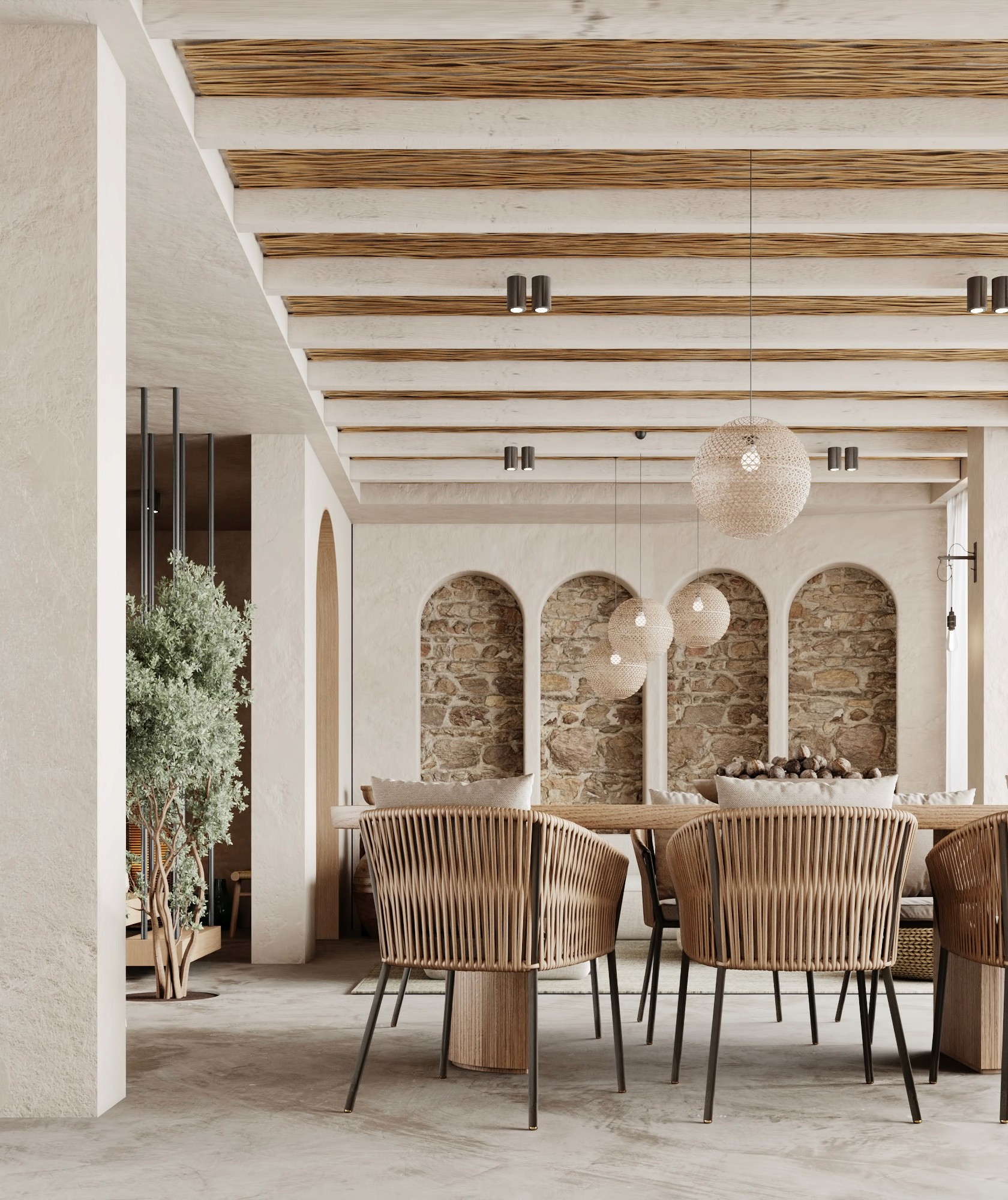 LUX Mykonos merges the island's rustic charm with a softly modern aesthetic creating a space that is both timeless and aesthetically pleasing. The design features a stunning combination of exposed brick walls wooden elements, and textured concrete, capturing Mykonos' natural beauty 🇬🇷 and materials while exuding a sophisticated edge.
