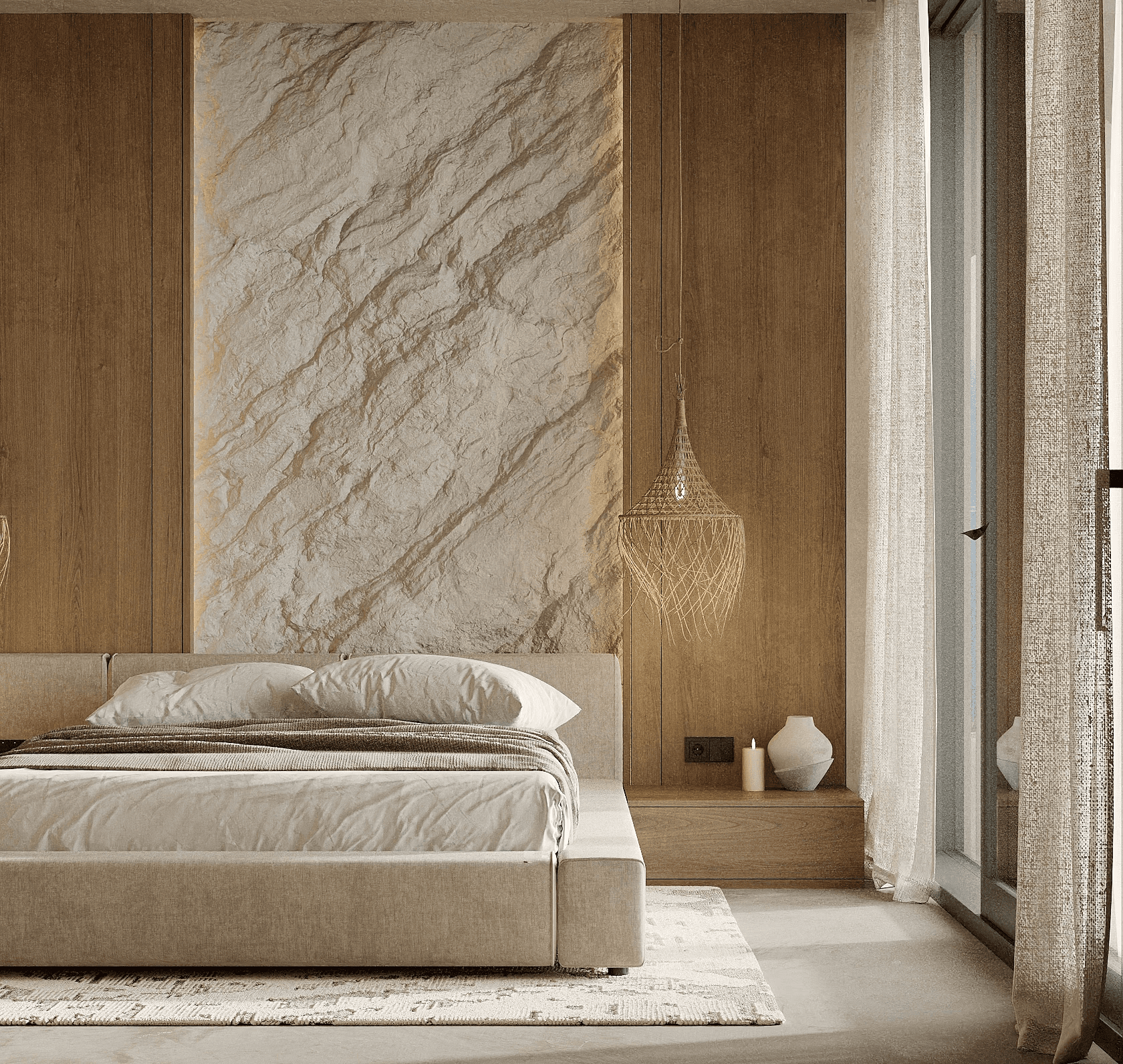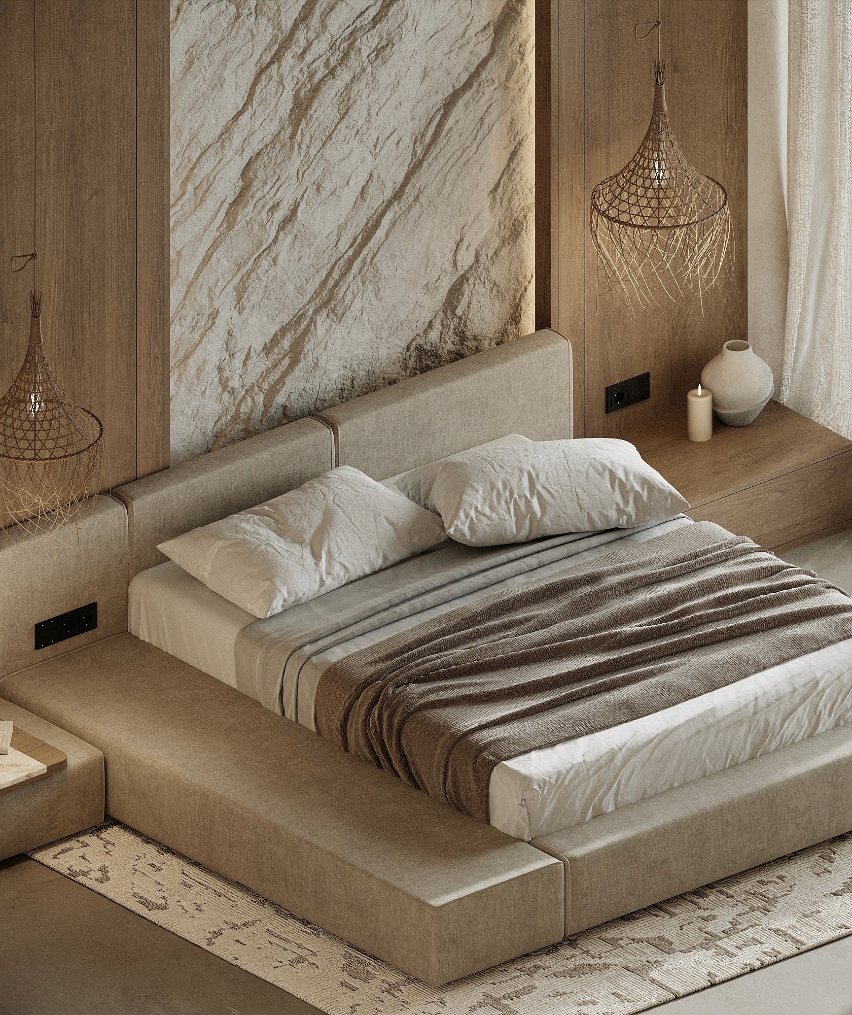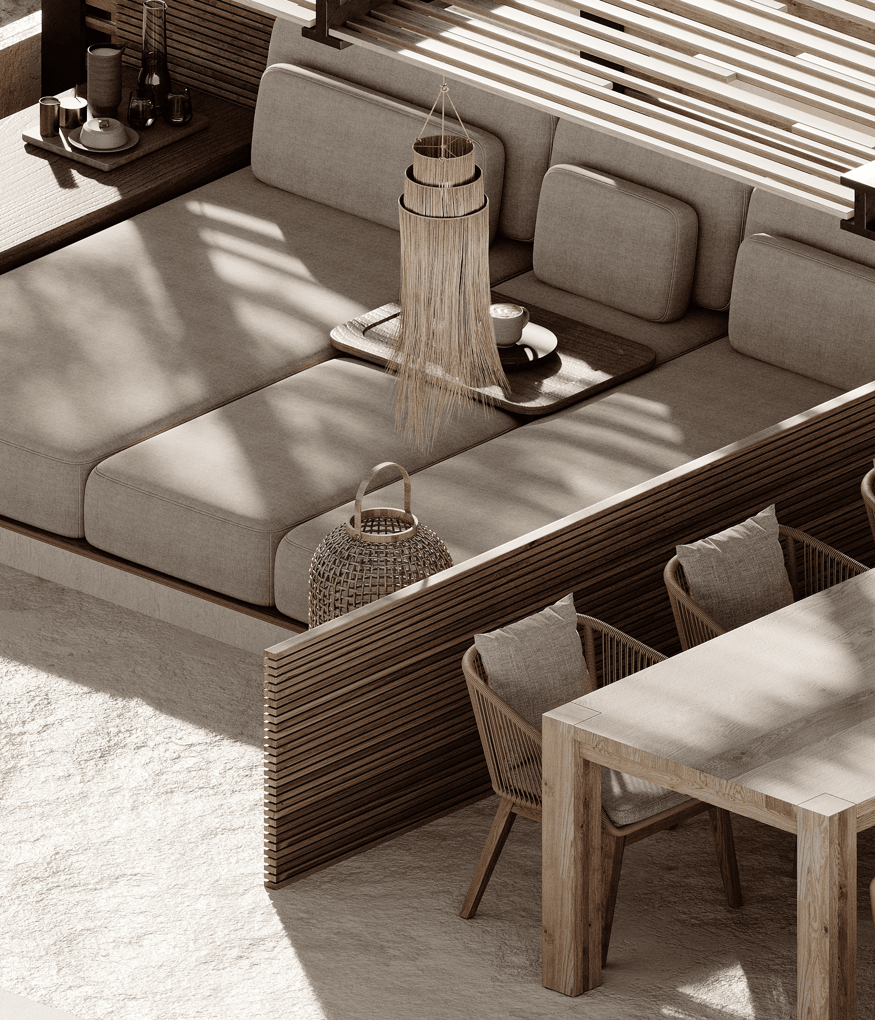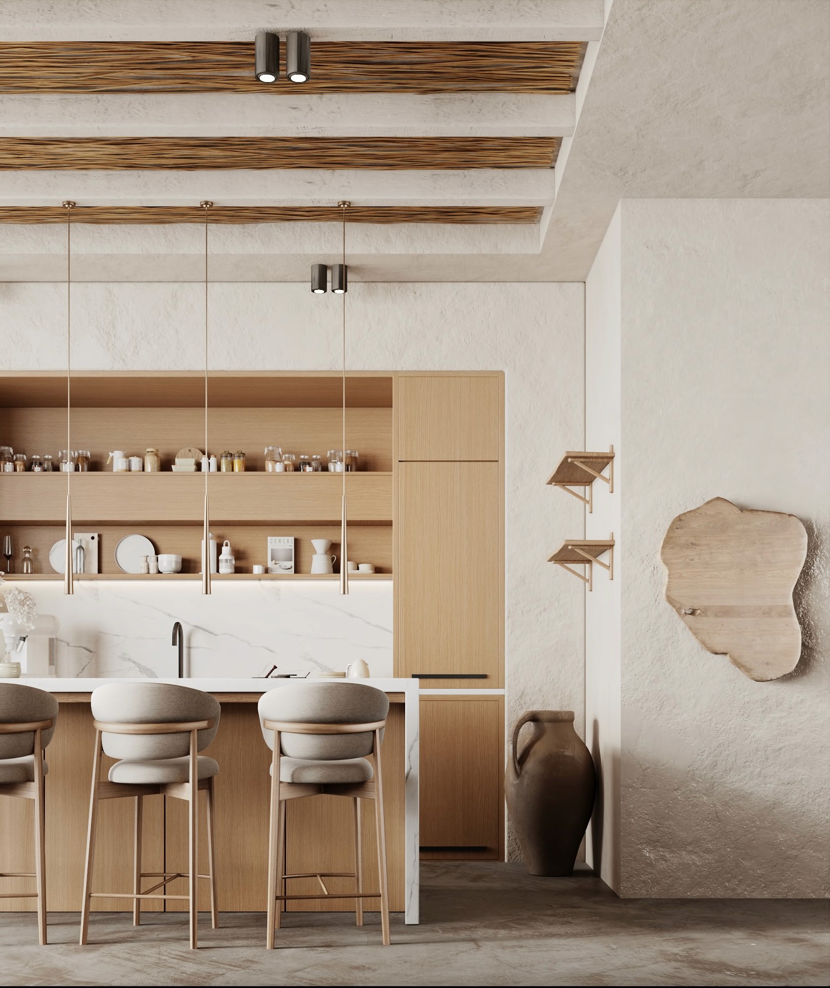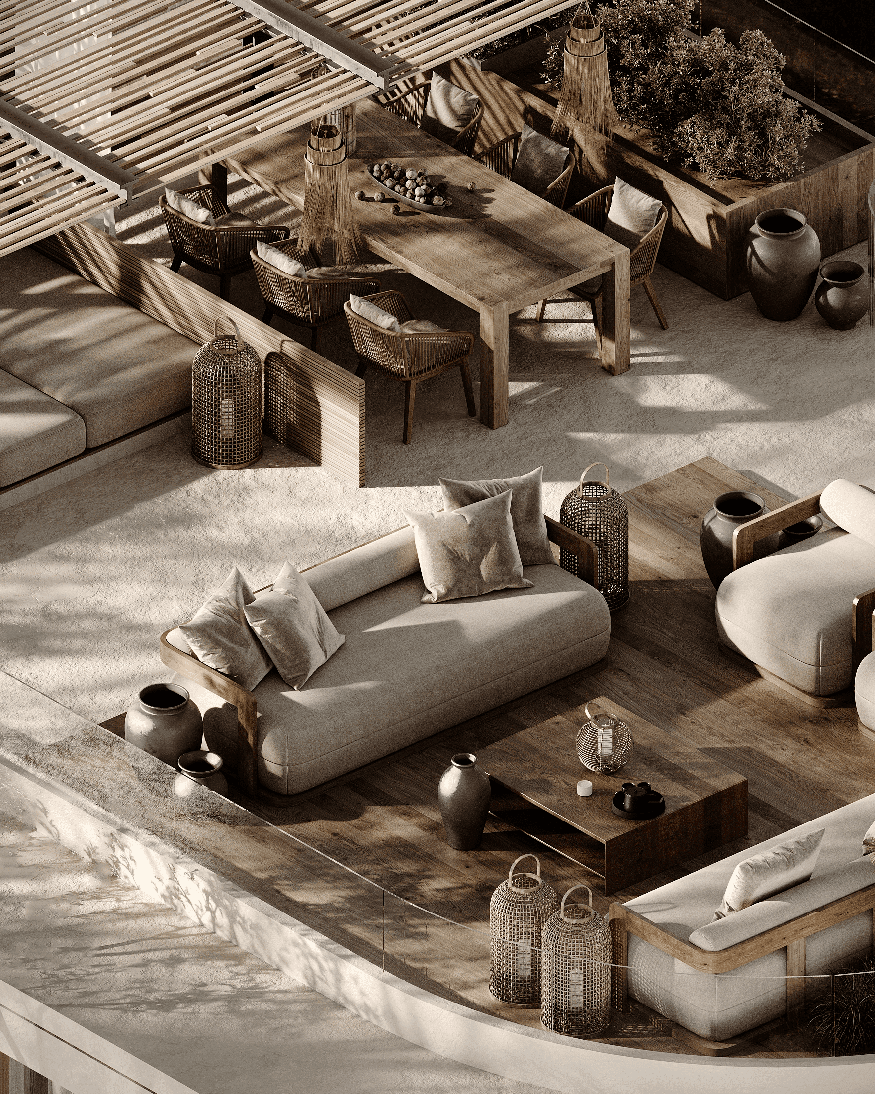 LUX Mykonos merges the island's rustic charm with a softly modern aesthetic creating a space that is both timeless and aesthetically pleasing. The design features a stunning combination of exposed brick walls wooden elements, and textured concrete, capturing Mykonos' natural beauty 🇬🇷 and materials while exuding a sophisticated edge.