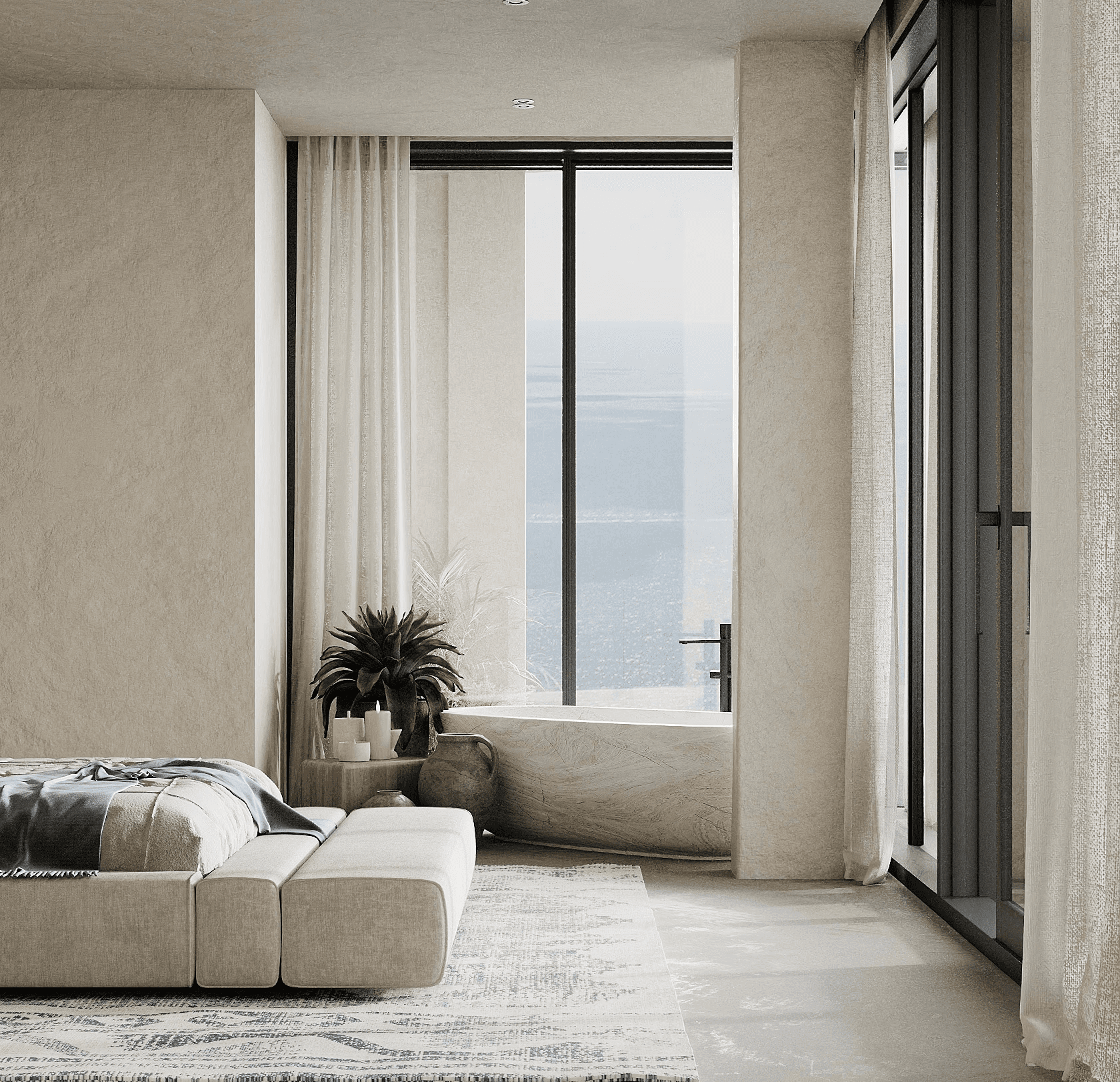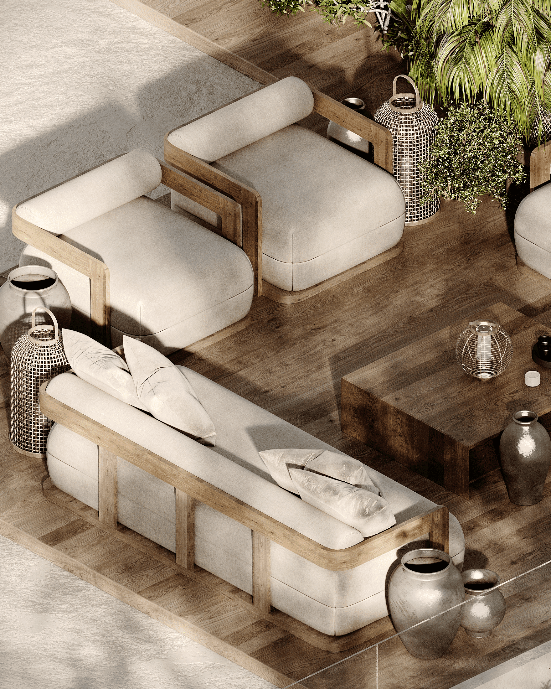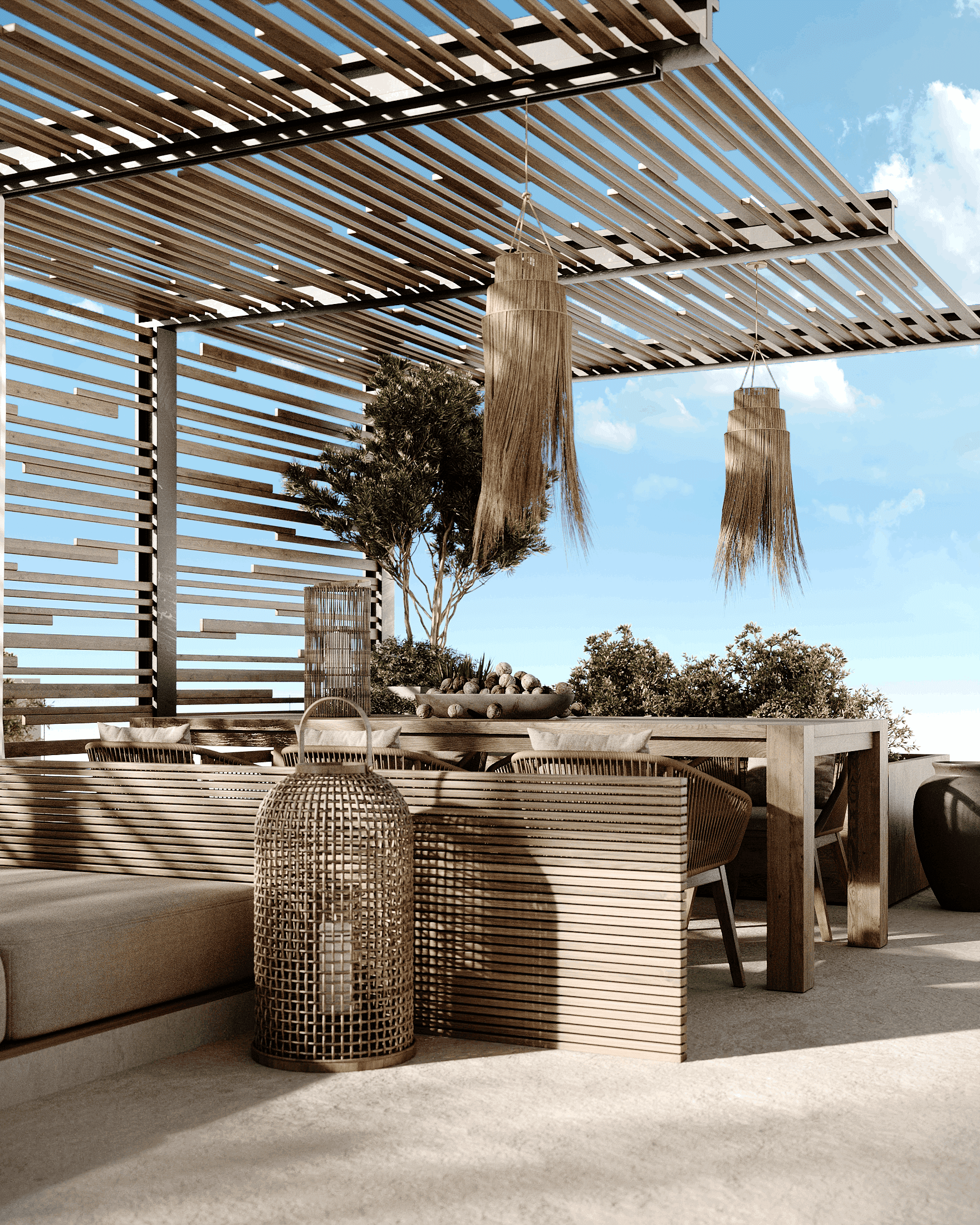 LUX Mykonos merges the island's rustic charm with a softly modern aesthetic creating a space that is both timeless and aesthetically pleasing. The design features a stunning combination of exposed brick walls wooden elements, and textured concrete, capturing Mykonos' natural beauty and materials while exuding a sophisticated edge.