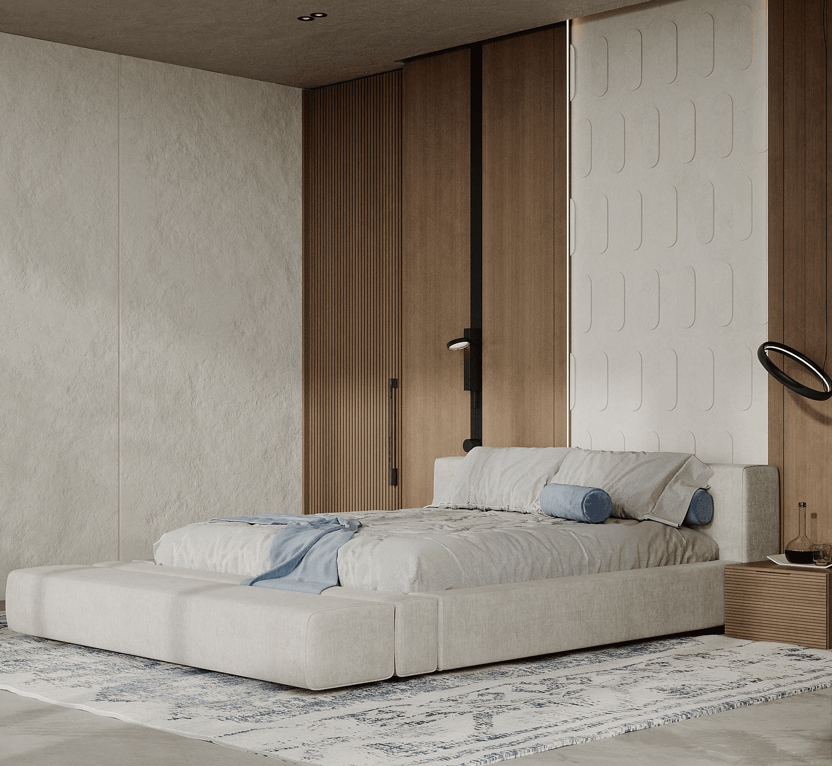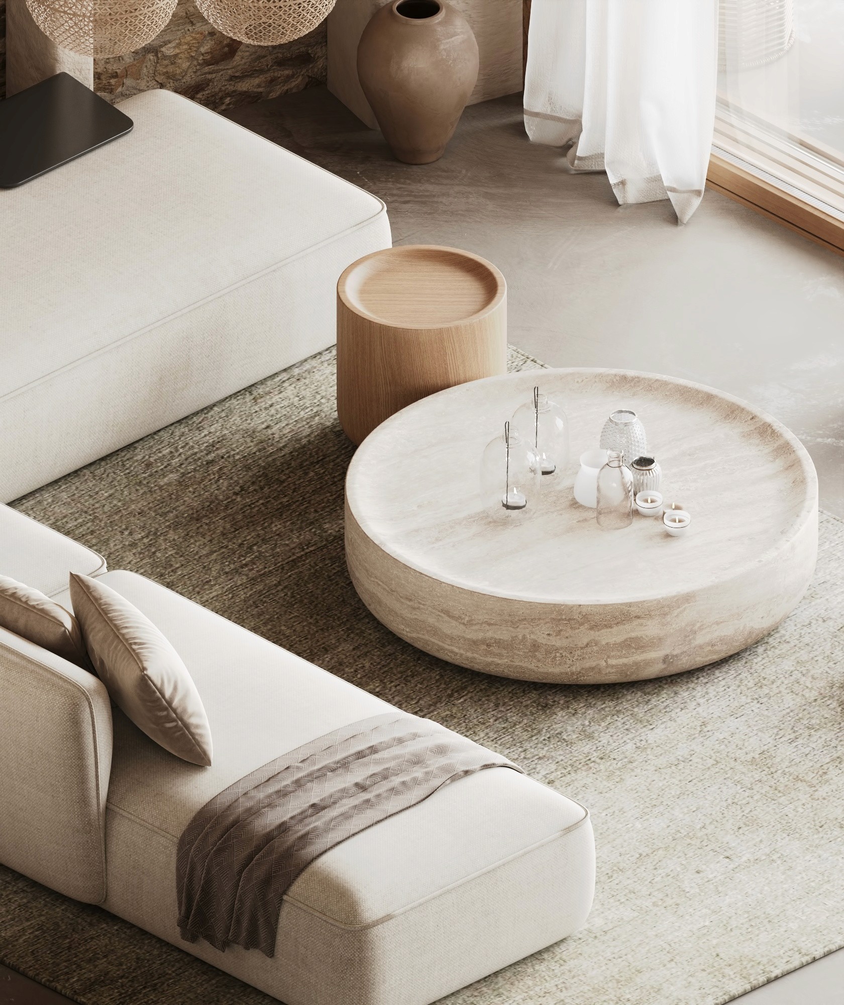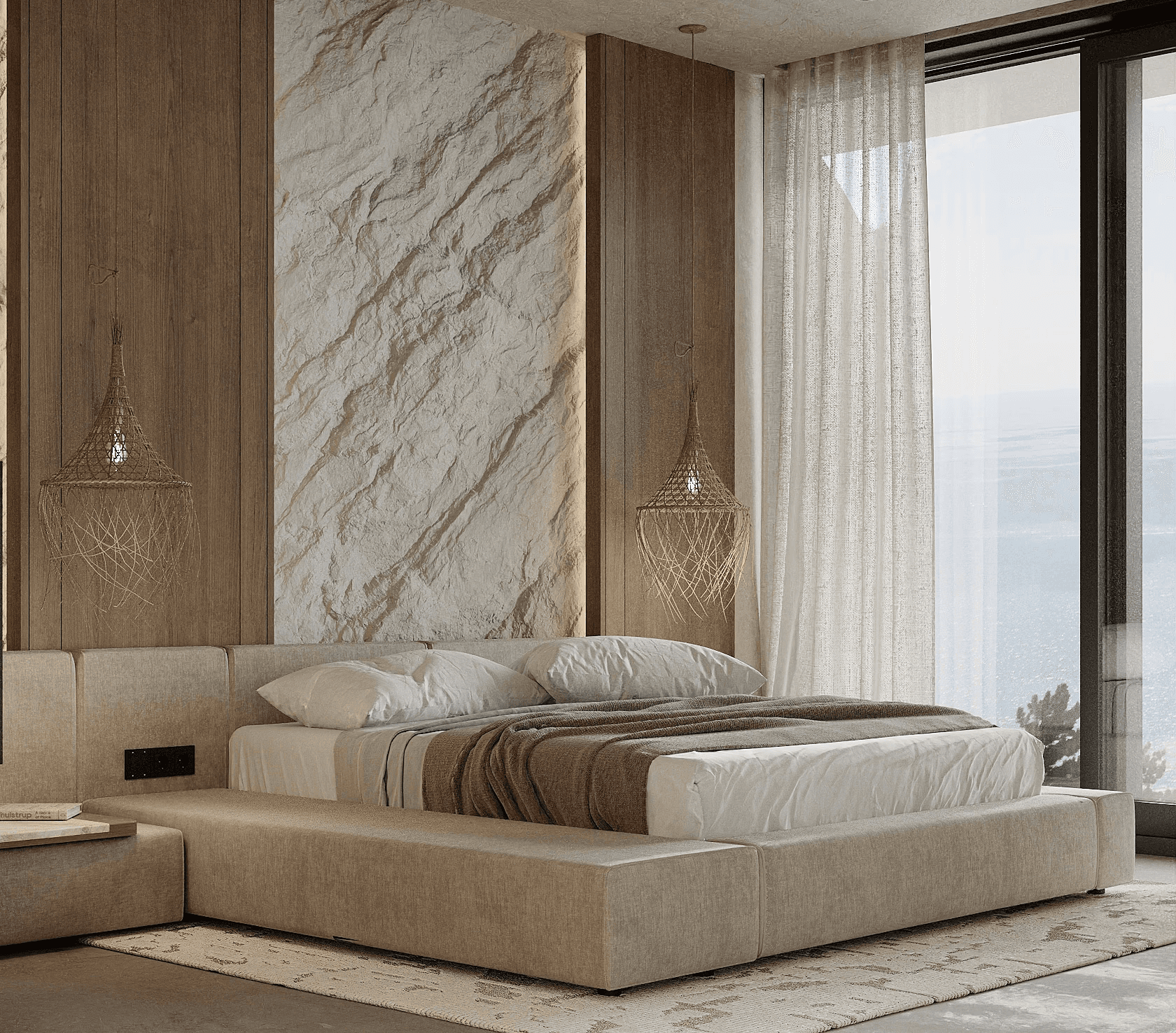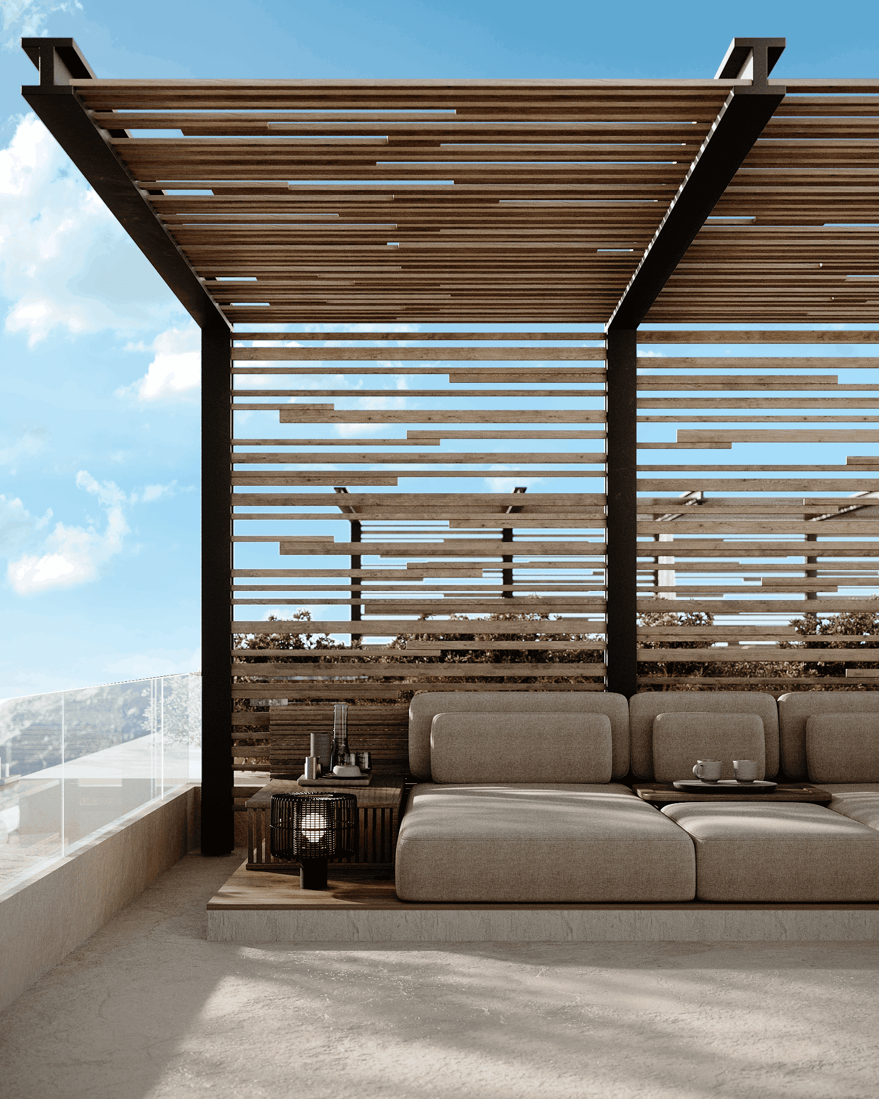 LUX Mykonos merges the island's rustic charm with a softly modern aesthetic creating a space that is both timeless and aesthetically pleasing. The design features a stunning combination of exposed brick walls wooden elements, and textured concrete, capturing Mykonos' natural beauty and materials while exuding a sophisticated edge.