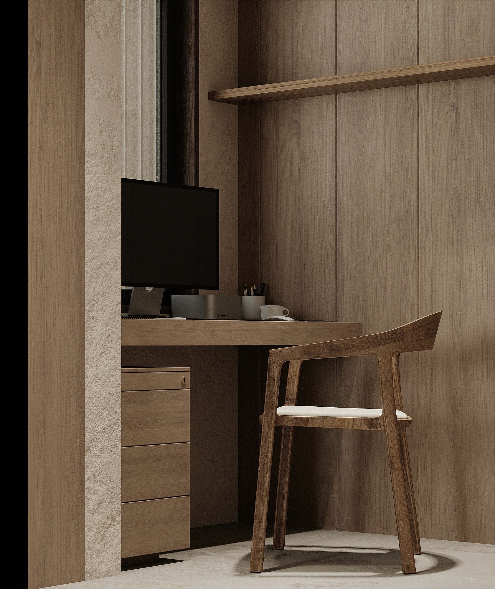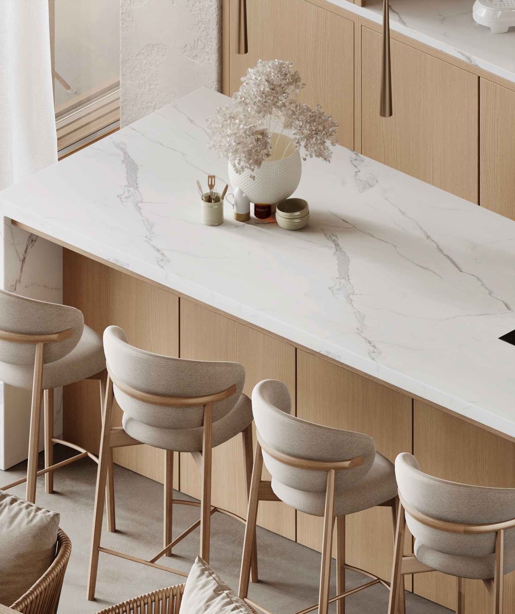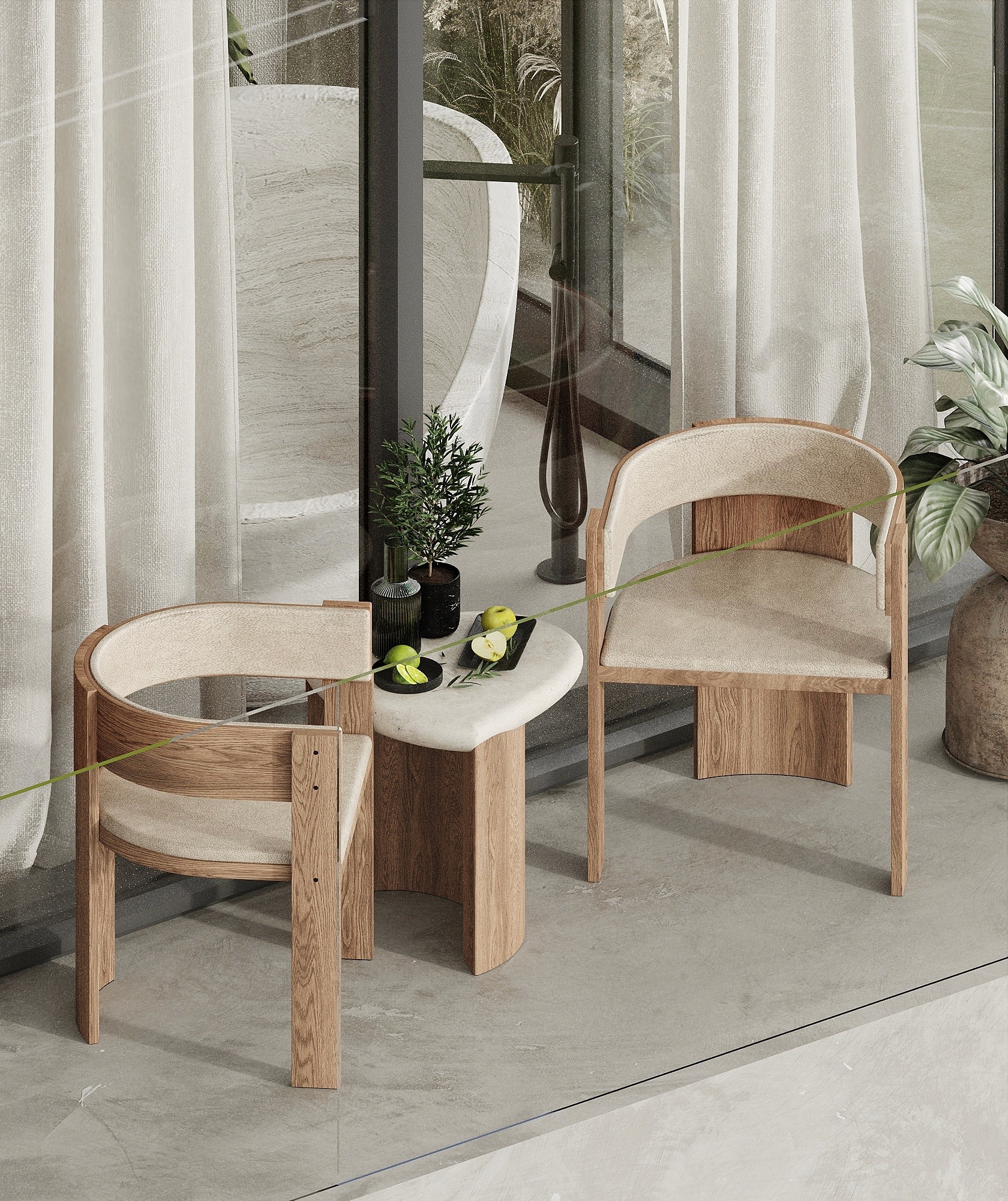 Rustic wooden details are integrated into the two bedroom villa, as a warm contrast to the sleek, minimalistic design. The raw textures bring you an authentic, cosy feel of Greece.